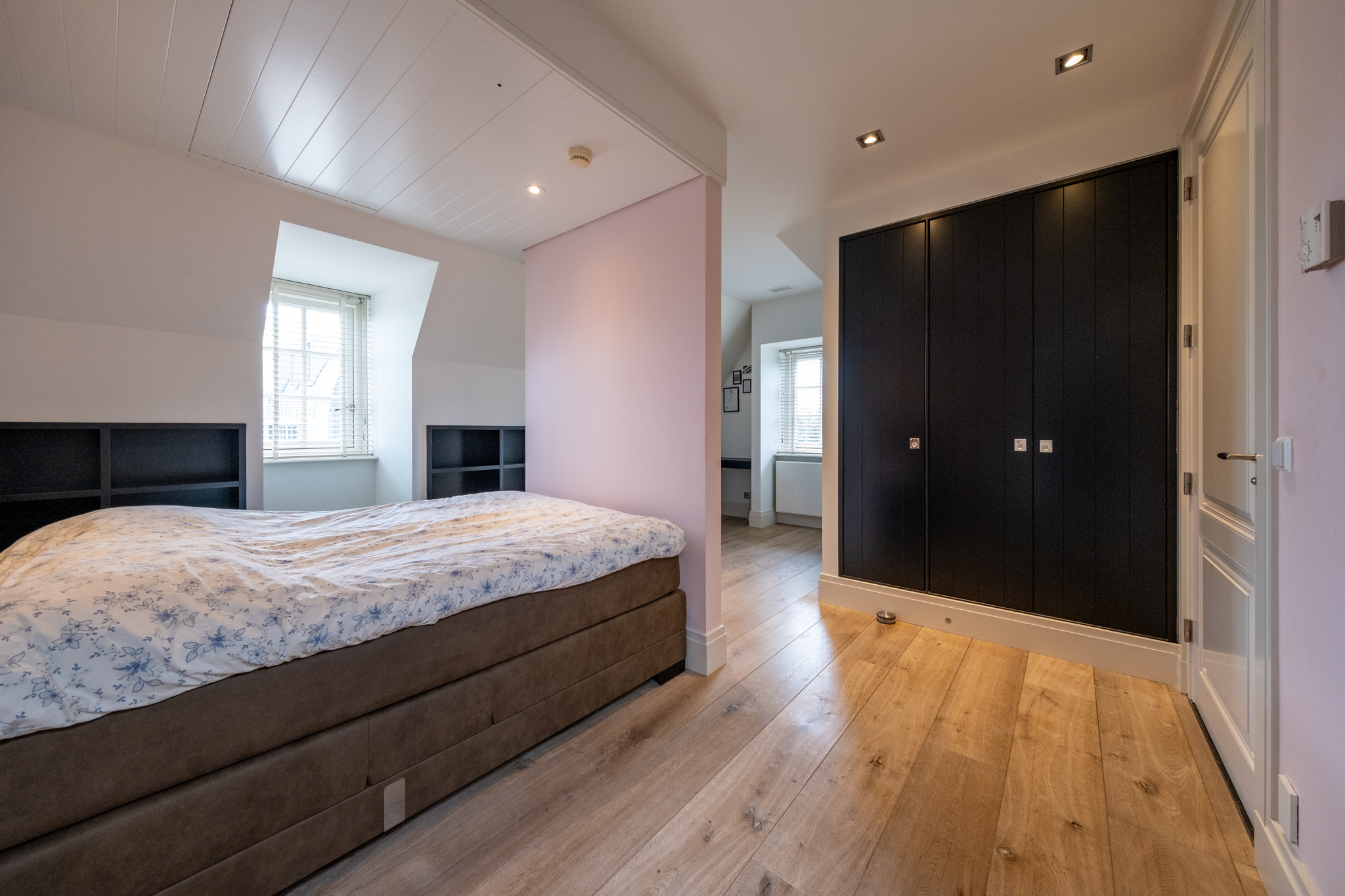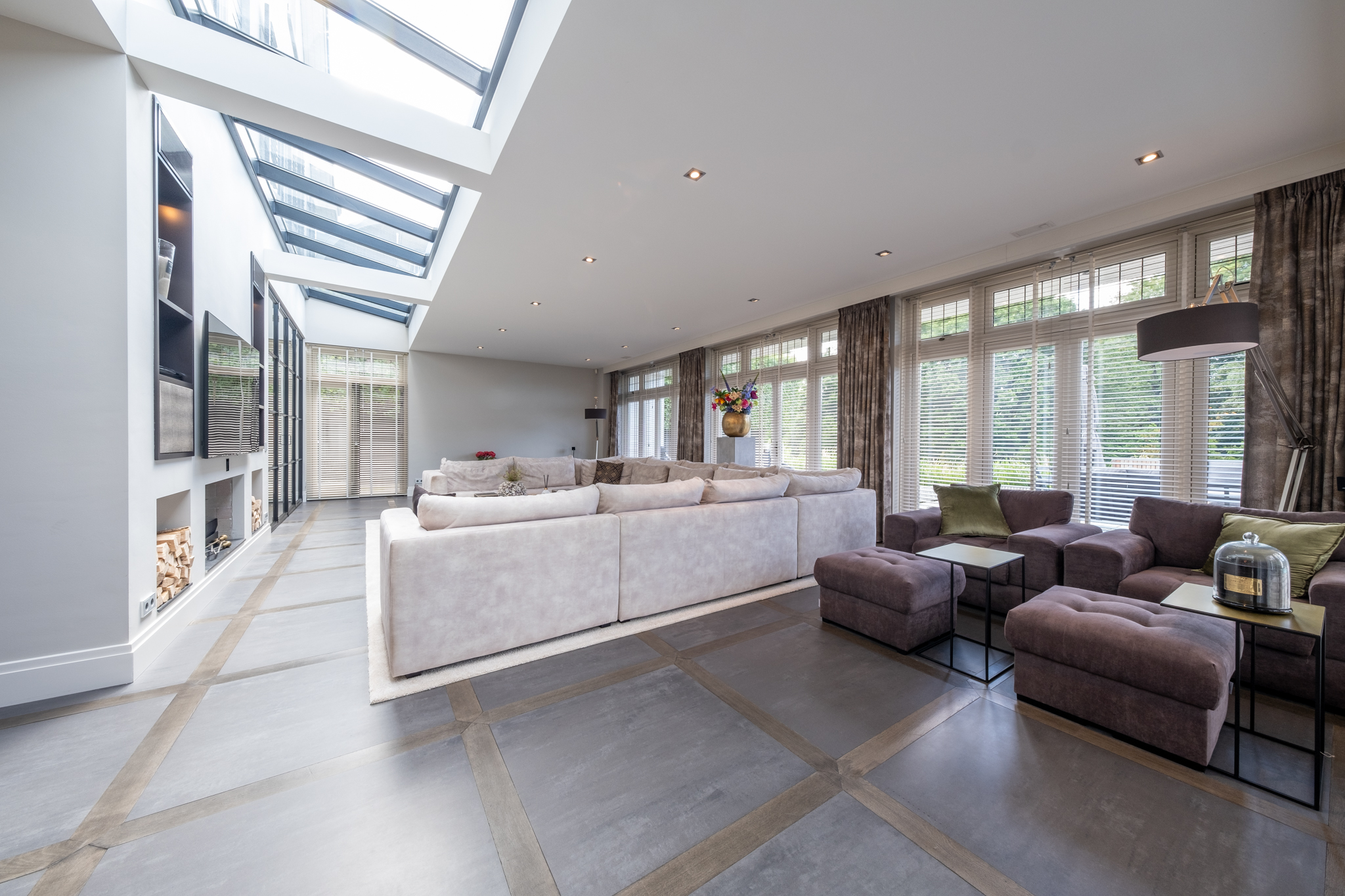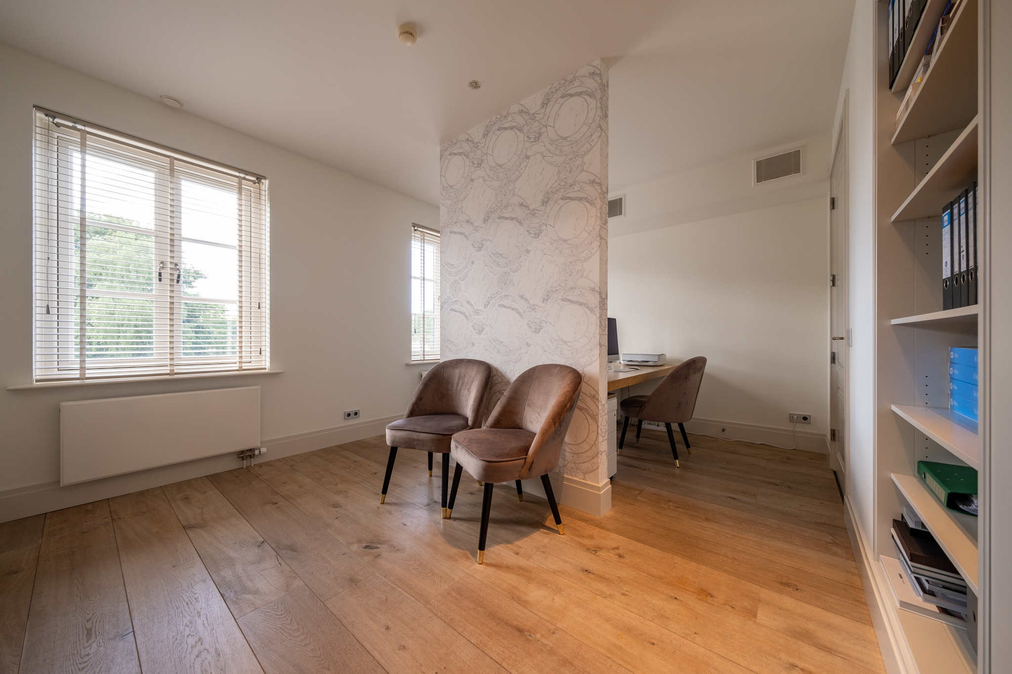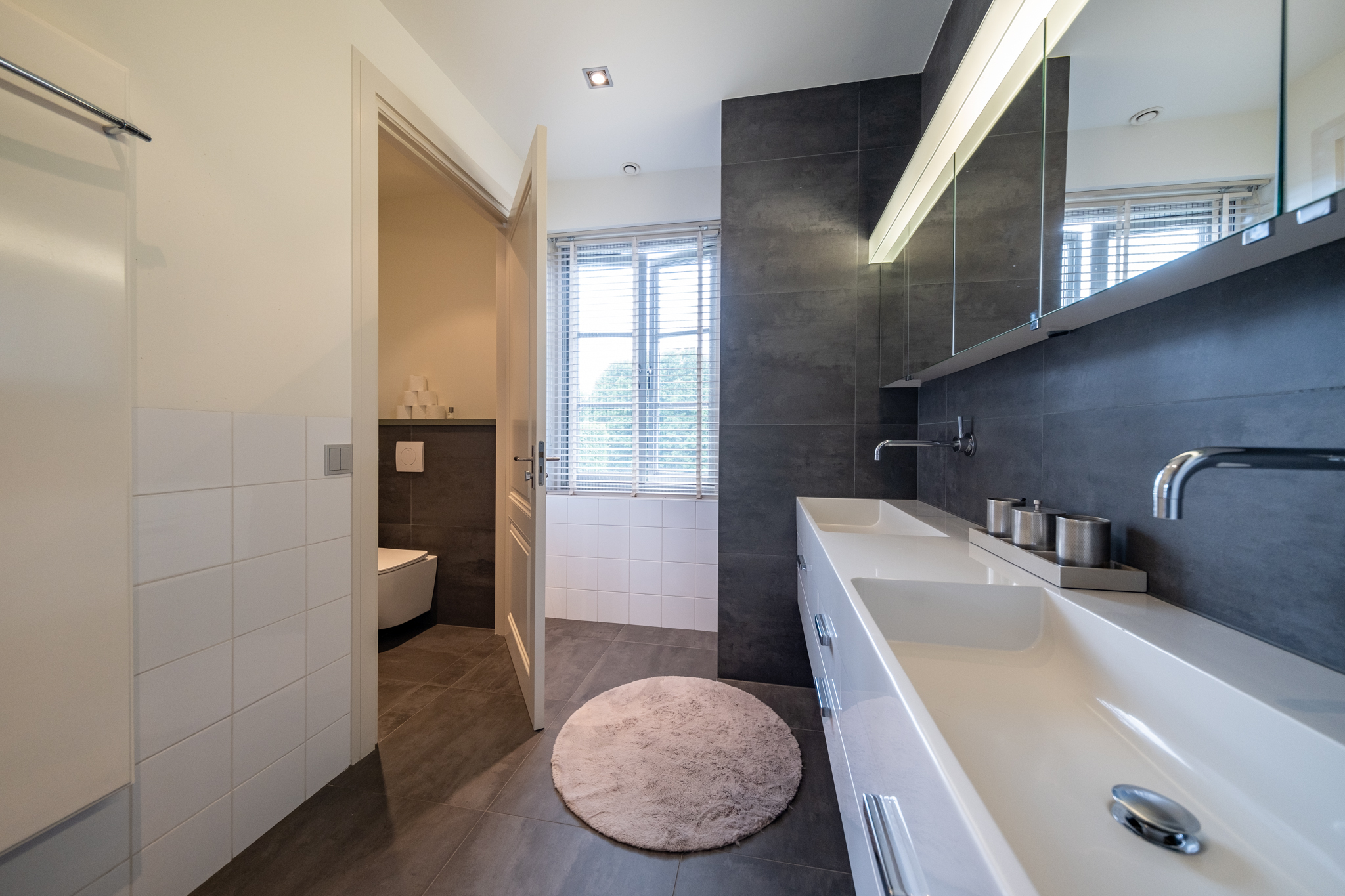 Bij binnenkomst ervaart u direct de allure van dit huis: een royale hal met statige bordestrap, een sfeervolle L-vormige woonkamer met glasstraat in het plafond en een fijne werkhoek. De woonkeuken van Eggersman is een waar pronkstuk: uitgerust met een kookeiland, topapparatuur van Viking en een sfeervolle gashaard. Dankzij de verdiepingshoge stalen pui is de keuken visueel verbonden met de woonkamer, terwijl u toch de luxe van een aparte keukenruimte behoudt. Naast de vele woonvertrekken beschikt de woning over een kelder, dubbele inpandige garage en een multifunctionele vleugel – ideaal als gastenverblijf, werkruimte of au-pair appartement.