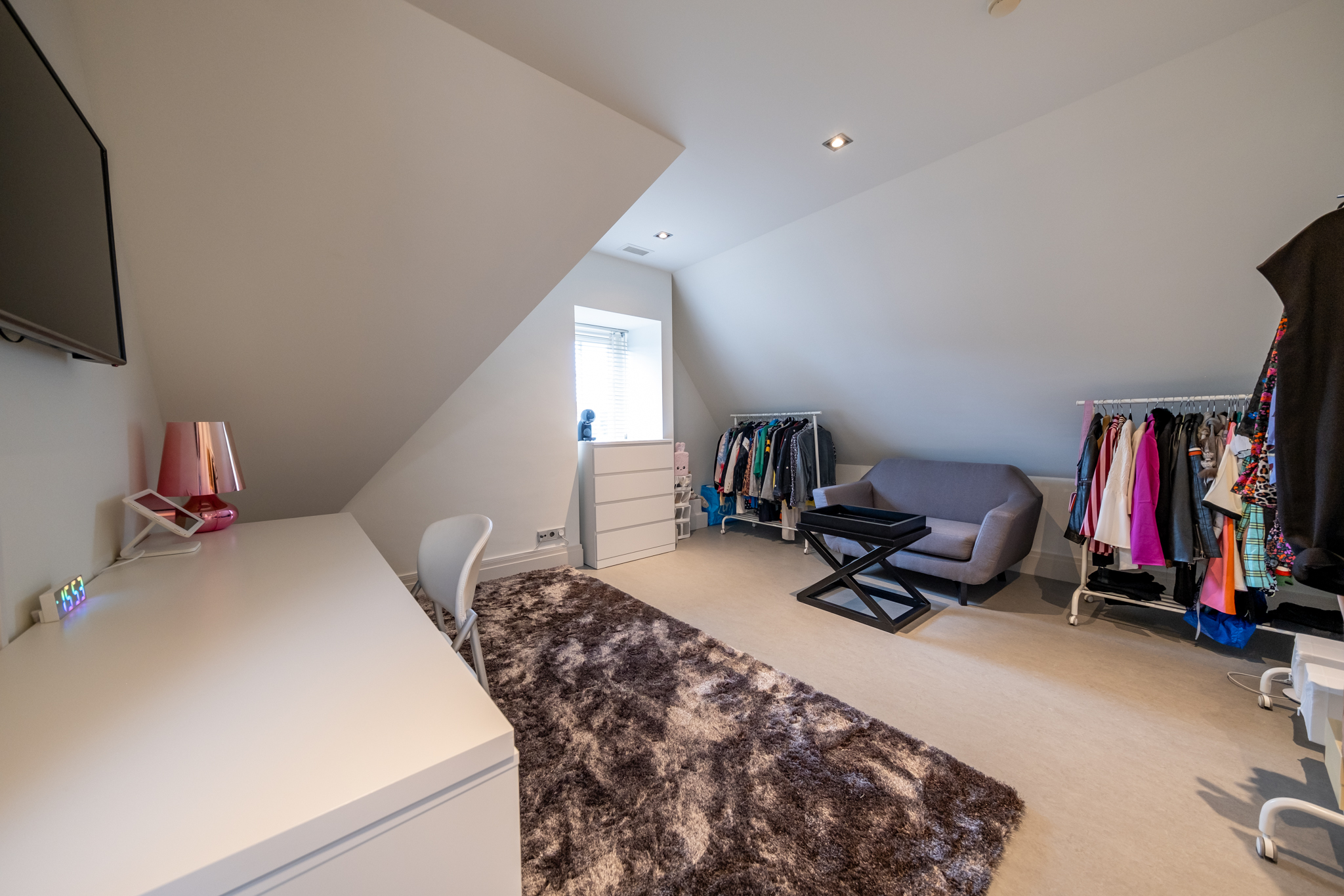 + loft boven de garage met eigen opgang, ideaal als thuisbioscoop, hobbyruimte, speelkamer, werkruimte of voor het verblijf van een au pair of schoonmoeder