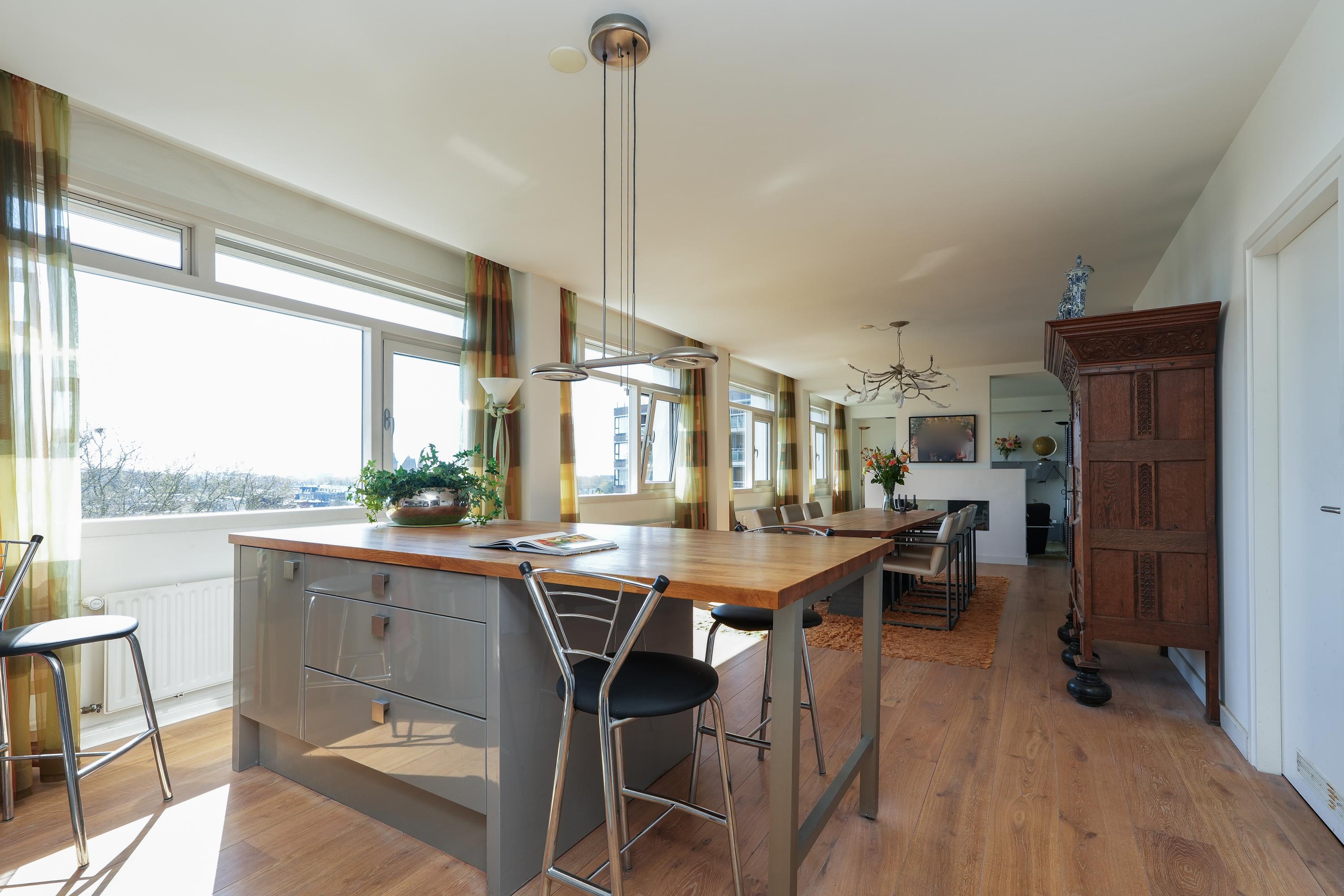 De woning is in 2009 ontstaan uit twee samengevoegde appartementen (nummers 44 en 46), wat heeft geresulteerd in een opmerkelijk ruim en logisch ingedeeld geheel met een duidelijke scheiding tussen wonen (44) en slapen (46). Tijdens deze samenvoeging is het appartement volledig en hoogwaardig gerenoveerd. In de woonkamer en hal ligt een massief eikenhouten vloer, wat samen met de strakke afwerking en het overvloedige daglicht zorgt voor een warme, luxe uitstraling. Grote raampartijen rondom bieden veel licht en indrukwekkende zichtlijnen met panoramisch uitzicht over de Waalbrug, de Ooijpolder en de stad. Privacy, comfort en afwerking komen hier samen in een unieke woonbeleving.