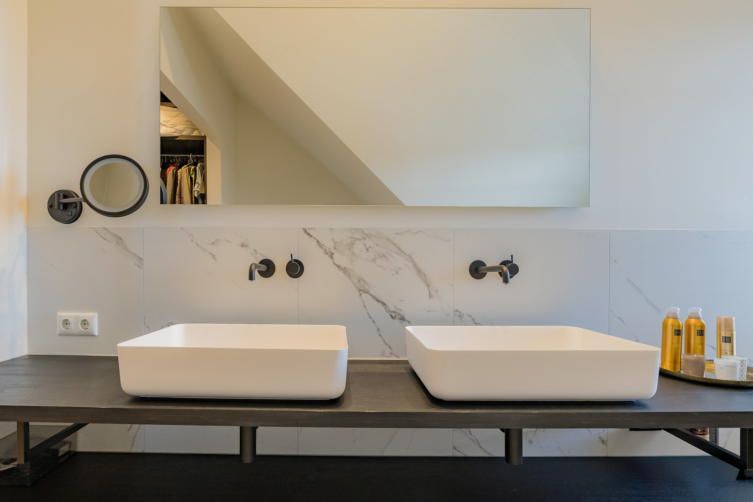 Op de eerste verdieping bevinden zich drie ruime slaapkamers met grote raampartijen die veel licht binnenlaten. De luxe badkamer is voorzien van een ruime inloopdouche en straalt comfort en stijl uit. Op de overloop is en separaat toilet.
