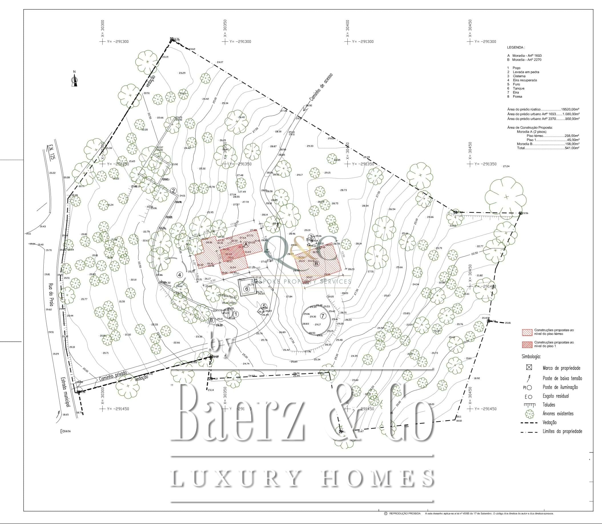 Het perceel van 20.400 m² omvat een nieuwe woning van 198 m² die zich in een vergevorderd stadium van bouw bevindt, terwijl voor een tweede woning van 338 m² de fundering ligt en de bouwvergunning is verleend. Deze twee villa’s bieden samen 536 m² flexibel woonoppervlak, ideaal als hoofdverblijf, gastenverblijf of investering voor de toekomst in de Algarve. Vier slaapkamers en drie badkamers zijn stijlvol opgenomen in het ontwerp; buitenruimtes, waaronder een dakterras, benadrukken de verbinding met zee en lucht.