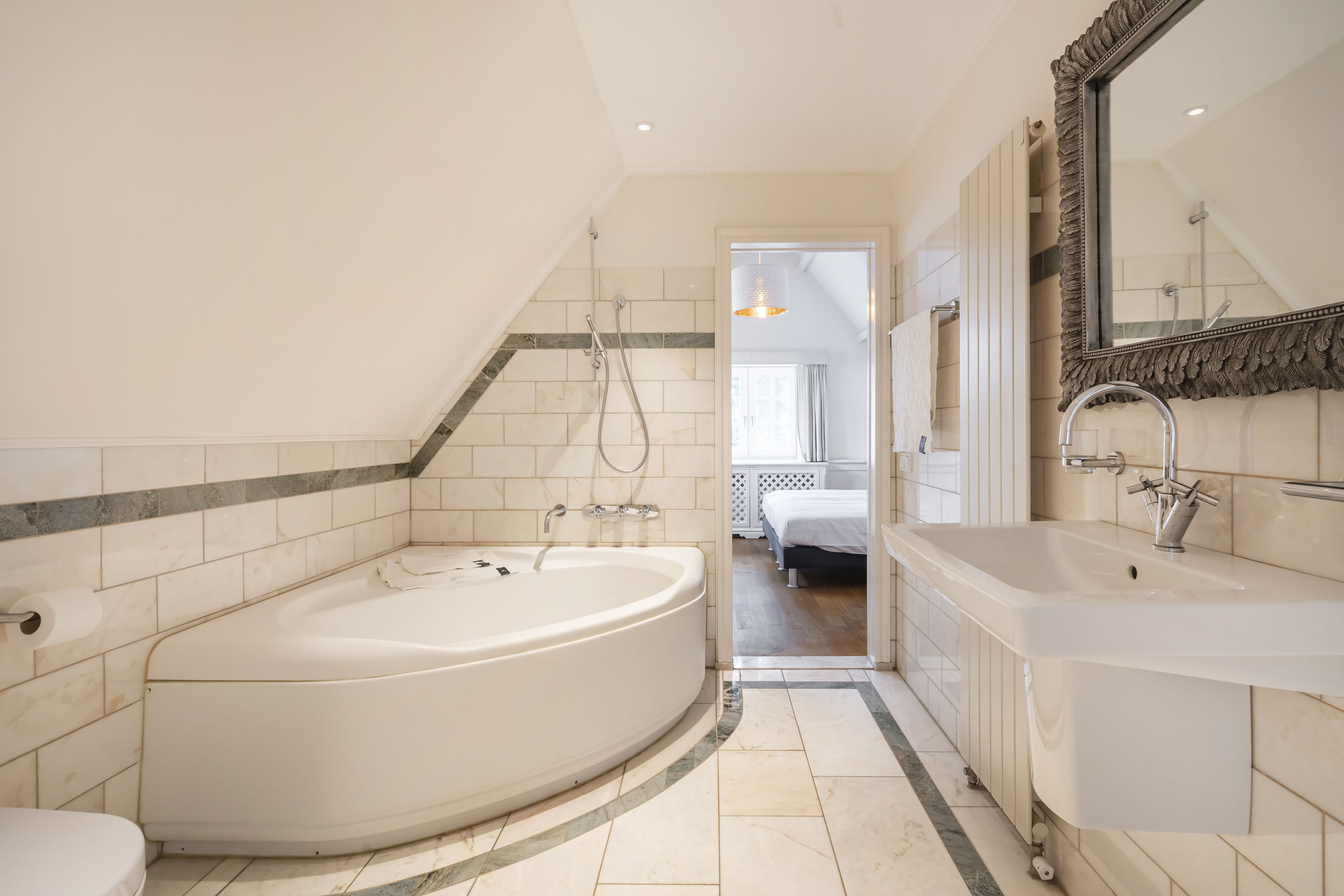 - slaapkamer met speelse via vaste trap te bereiken extra ruimte in de nok, badkamer met ligbad, douche, toilet en wastafel en designradiator