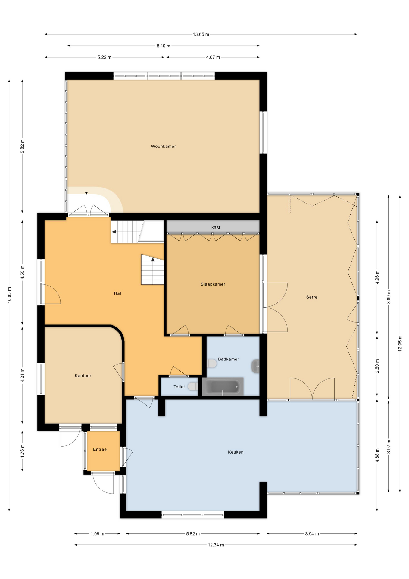 - aansluitend een grote serre, uitgevoerd in stijlvolle antracietkleurige kozijnen die in zijn geheel op kunnen worden gezet. Het eikenhout en de gietvloer combineren fraai en maken dit tot een geliefde multifunctionele ruimte;