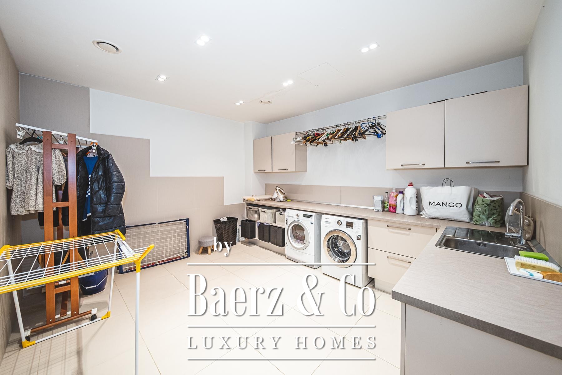 Op de begane grond worden de leefruimten royaal verlicht. De entree straalt een zekere rust uit en biedt toegang tot een moderne keuken, een eetgedeelte en een uitnodigende lounge. Extra voorzieningen omvatten een bijkeuken, garderobe en gastentoilet. In het souterrain bieden een privé lounge, wasruimte, badkamer met douche en extra opbergruimte mogelijkheden voor wellness, ontspanning of besloten bijeenkomsten.