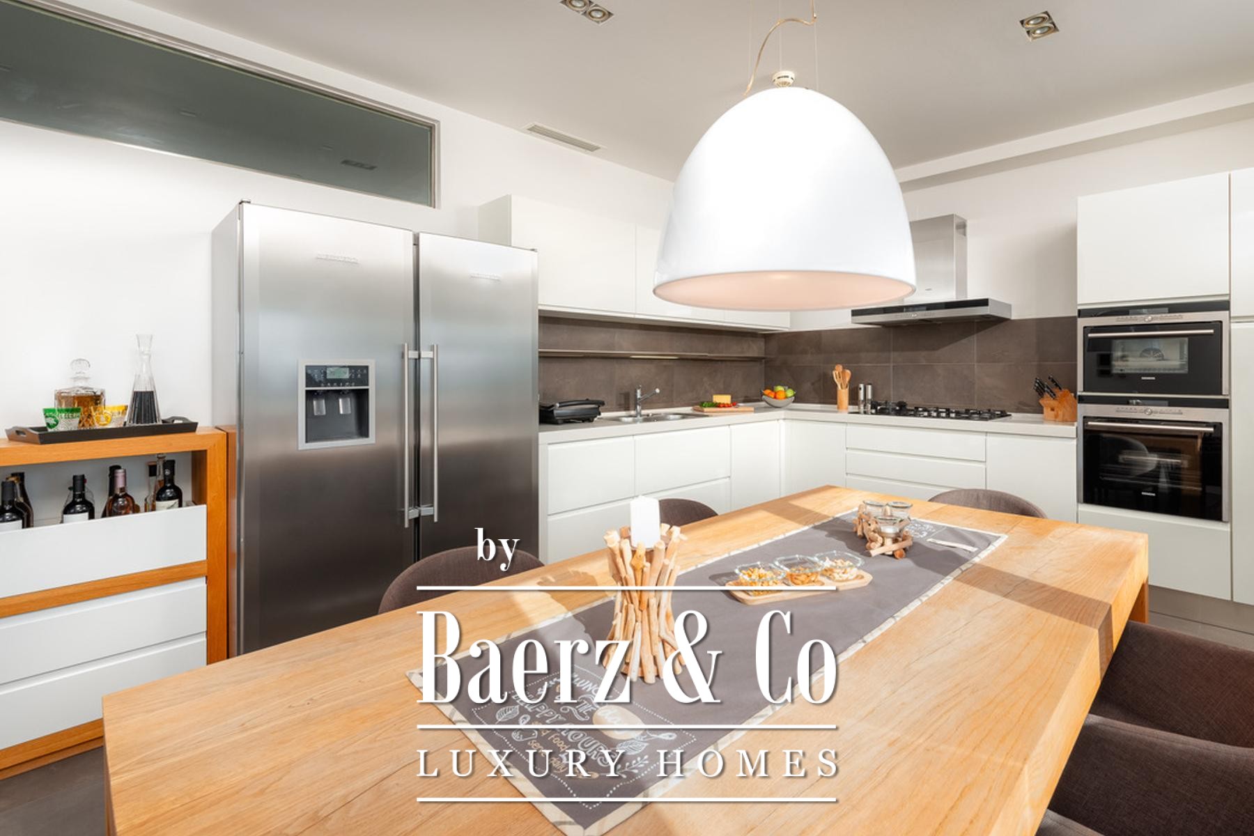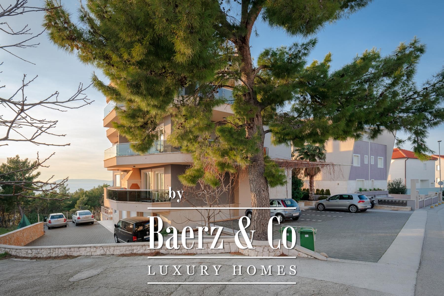 Drie terrassen met een gezamenlijk oppervlak van 18,38 m² bieden panoramische vergezichten over de Adriatische Zee, beschermd en blijvend. De leefruimtes worden overspoeld door daglicht, geaccentueerd door grote raampartijen en optimale oriëntatie. Een aparte werkruimte biedt plaats aan wasvoorzieningen en een afzonderlijke garderobe zorgt voor extra organisatie. Door het gehele appartement is een geavanceerd domoticasysteem aanwezig dat vloerverwarming, airconditioning, luchtverversing, brand- en rookmelders, een centraal stofzuigsysteem, zonnepanelen voor warm water, elektrische rolluiken en zonwering, en hoogwaardige apparatuur integreert. Op het terras nodigt een traditionele gemetselde open haard uit om buiten in de Dalmatische sfeer te vertoeven.