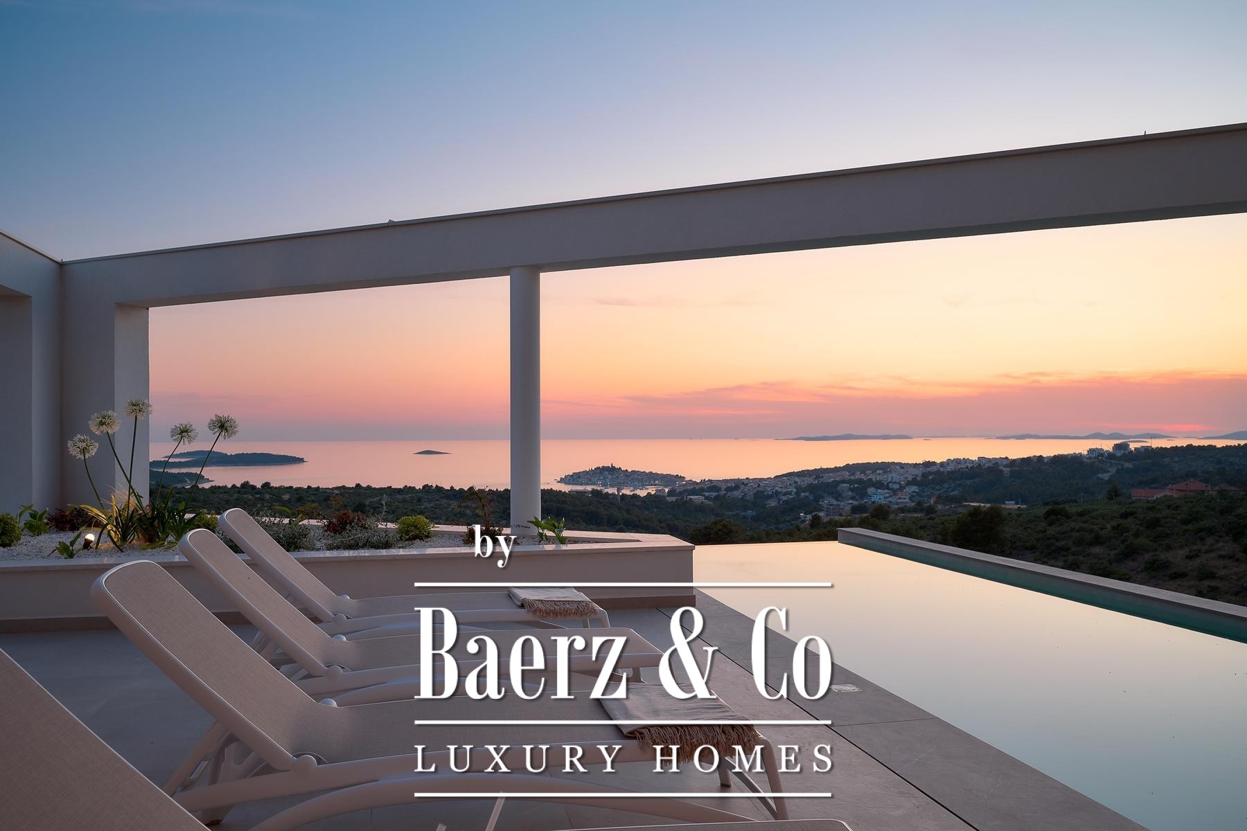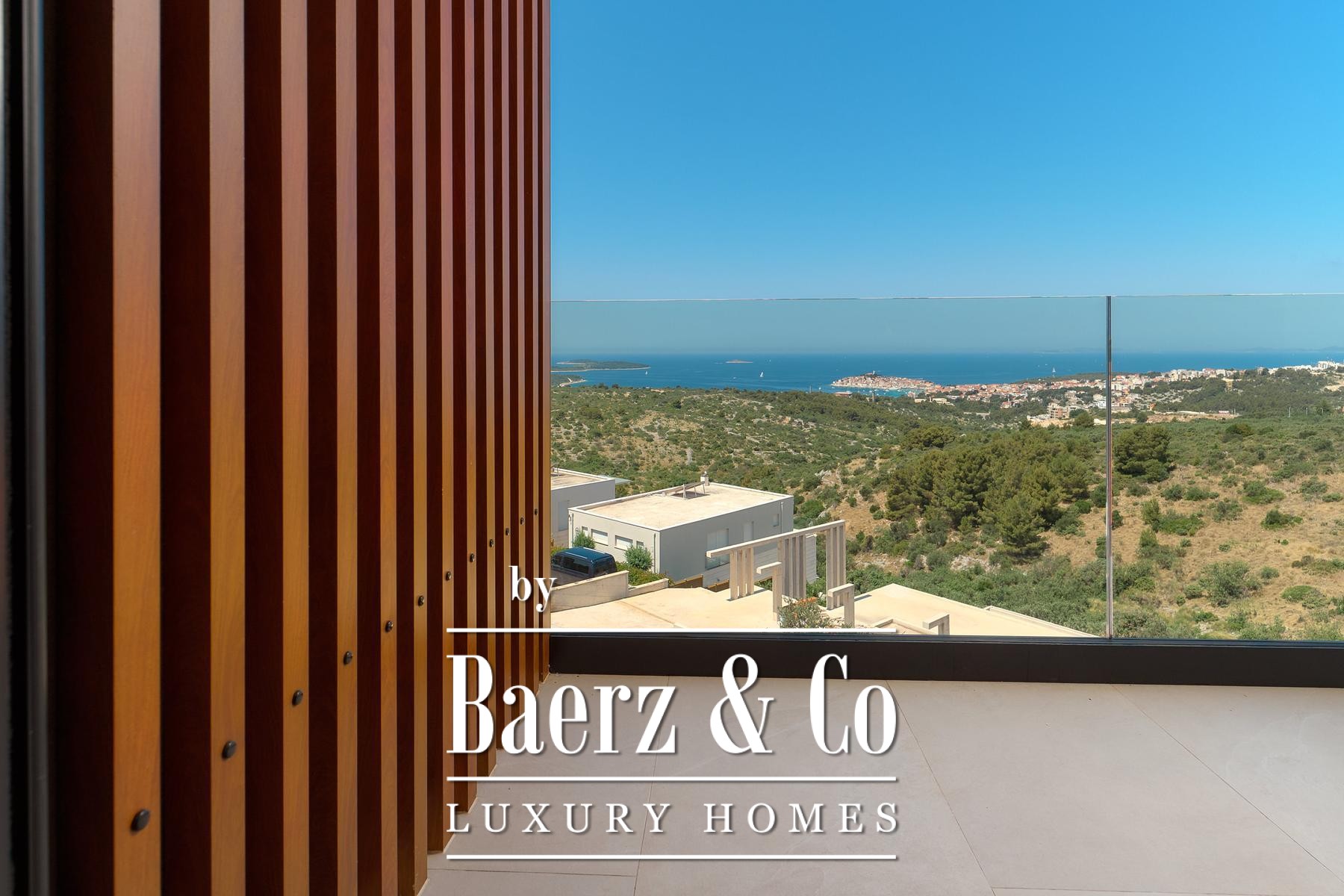 Villa Primošten met panoramisch zeezicht is een opvallende, eigentijdse residentie in Kroatië met 559 m² verfijnde leefruimte op een perceel van in totaal 1.106 m². Deze villa is ontworpen voor liefhebbers van architectonische perfectie die willen genieten van onbelemmerde vergezichten over zee op elk niveau. Het wooncomfort wordt versterkt door een infinity pool die visueel overgaat in de horizon, en royale terrassen die een gebalanceerde mix bieden van privacy en openheid.