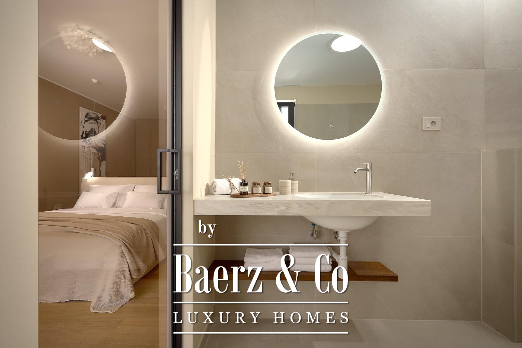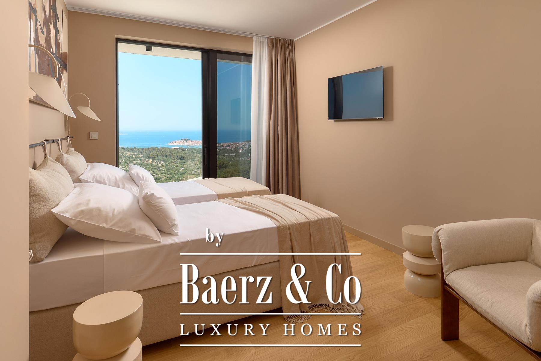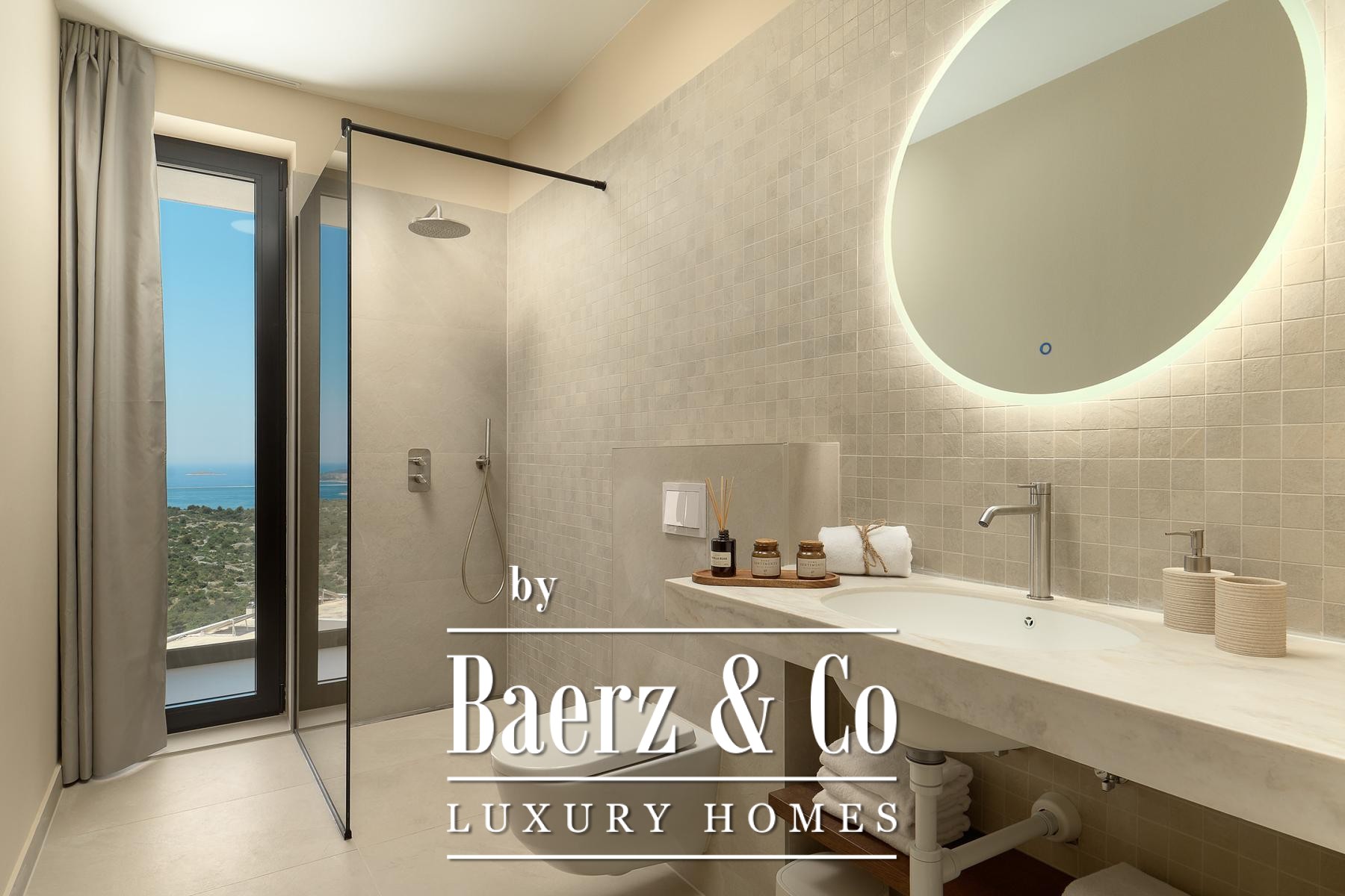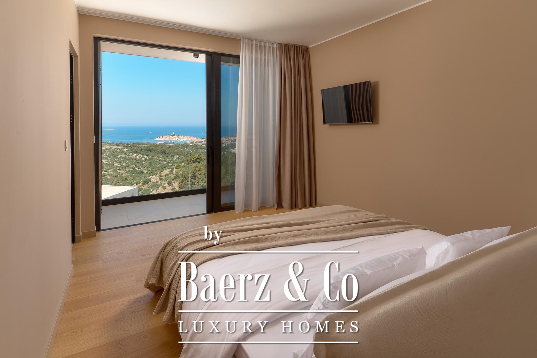 Verspreid over drie verdiepingen is 379,58 m² gereserveerd voor levendig wonen en persoonlijke retraite. Op de bovenste etage bevinden zich vier slaapkamers, elk met eigen badkamer en balkon met uitzicht over de Adriatische Zee, waardoor zowel exclusiviteit als rust gewaarborgd zijn. In het souterrain bevindt zich een studio voor gasten of personeel met eigen terras, aangevuld met een garage voor twee auto's, bergruimte en technische ruimtes.