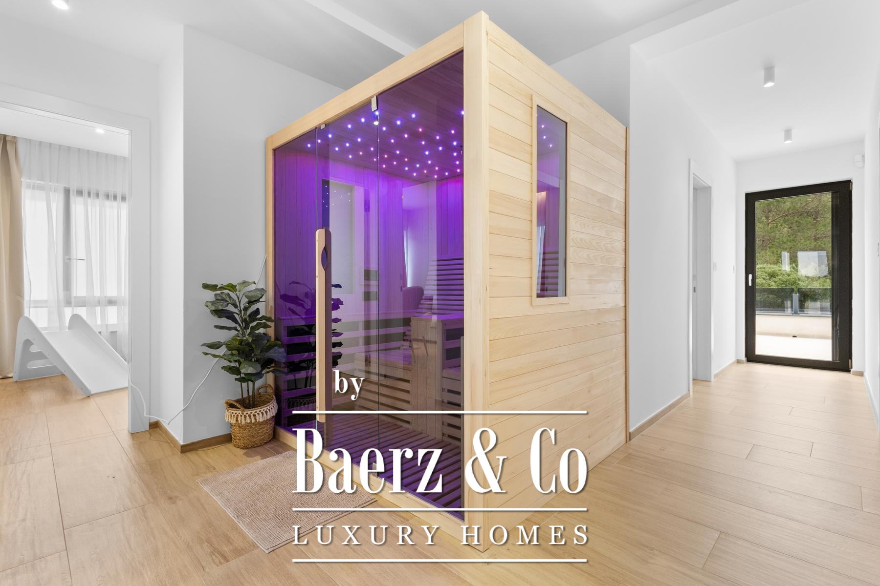 Het dagelijkse leven ontvouwt zich rondom een open leefruimte van 48 m², waar keuken, eet- en loungegedeelte naadloos in elkaar overlopen. Vloer-tot-plafond glaspartijen openen naar een overdekt terras van 23 m², waardoor licht binnenvalt en binnen en buiten samenvloeien. Vier slaapkamers en vier badkamers zorgen voor flexibiliteit, waarbij de bovenverdieping een master suite met inloopkast en aparte kinderkamers biedt. Vrije tijd wordt naar een hoger niveau getild dankzij een fitnessruimte en sauna van 30 m² en twee besloten dakterrassen, elk met optimale privacy binnen de stedelijke omgeving.
