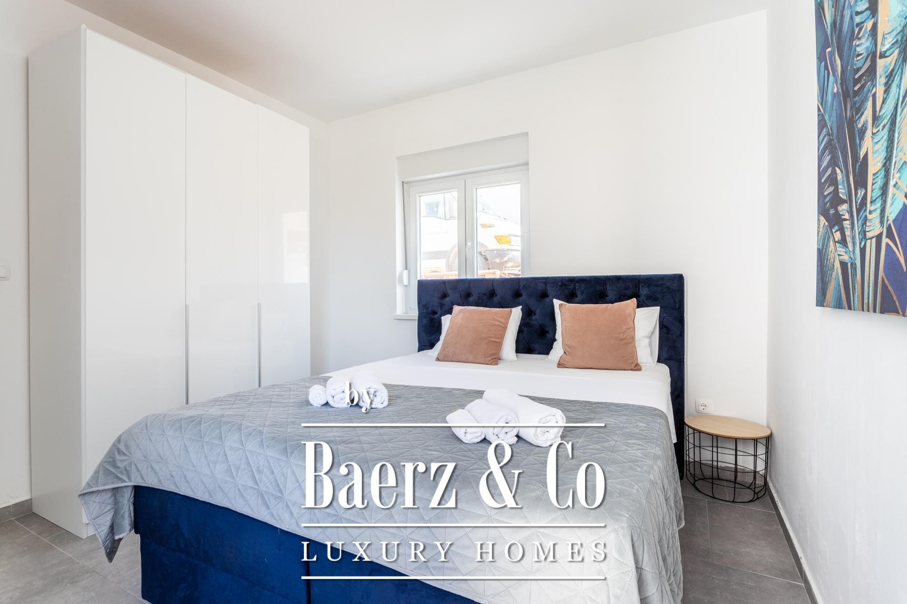 Gebouwd op een compact perceel van 207 m² in Zečevo, is het huis afgewerkt volgens hoge standaarden en voorzien van drie privéparkeerplaatsen. De ligging is rustig en ingetogen, maar de kust en het strand zijn op korte loopafstand. Voor wie zoekt naar een kustpand met architectonische helderheid en functionaliteit, vormt dit huis in Rogoznica een uitgebalanceerd toevluchtsoord aan de Kroatische kust.