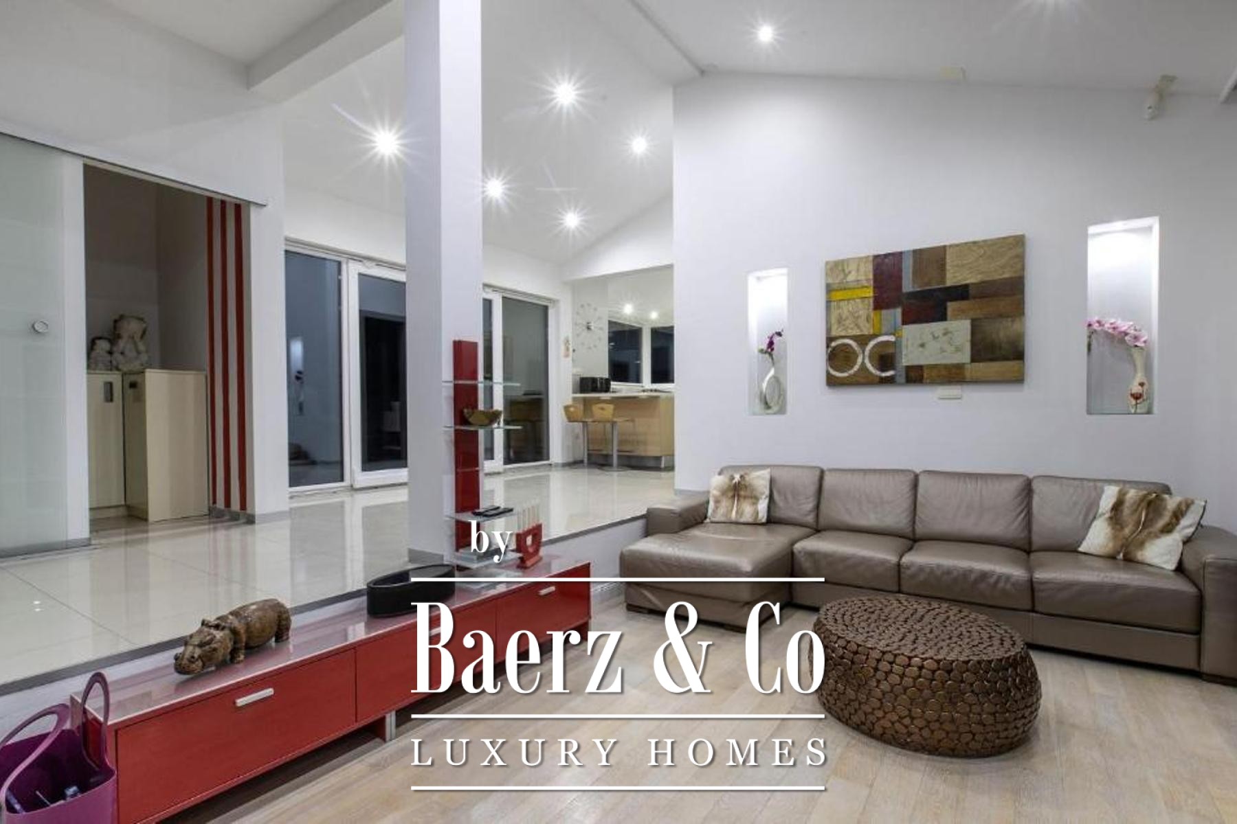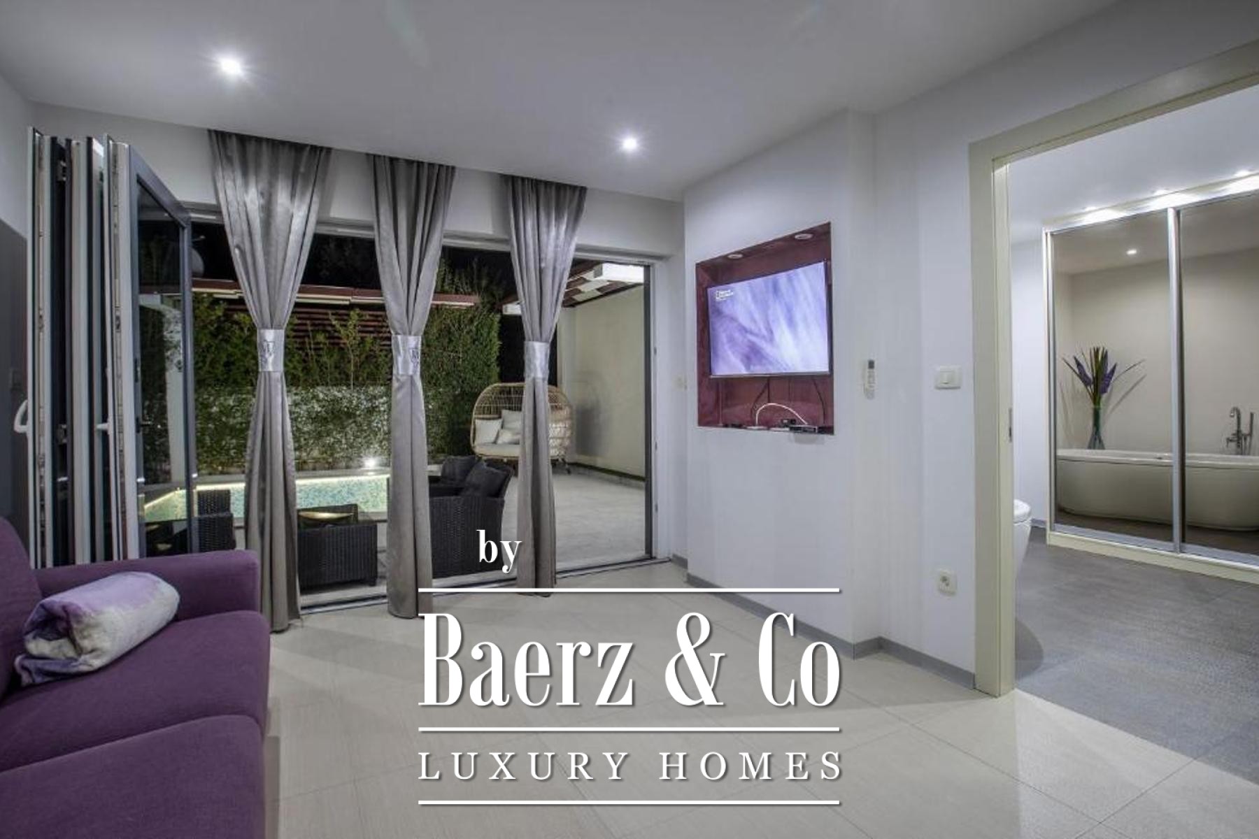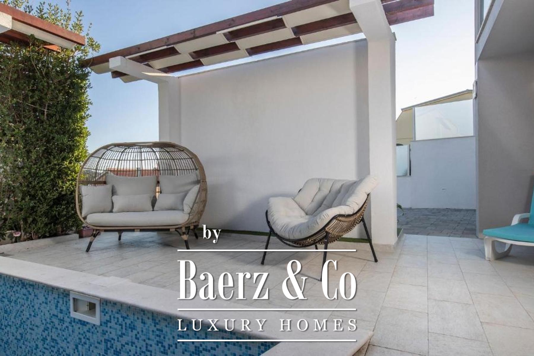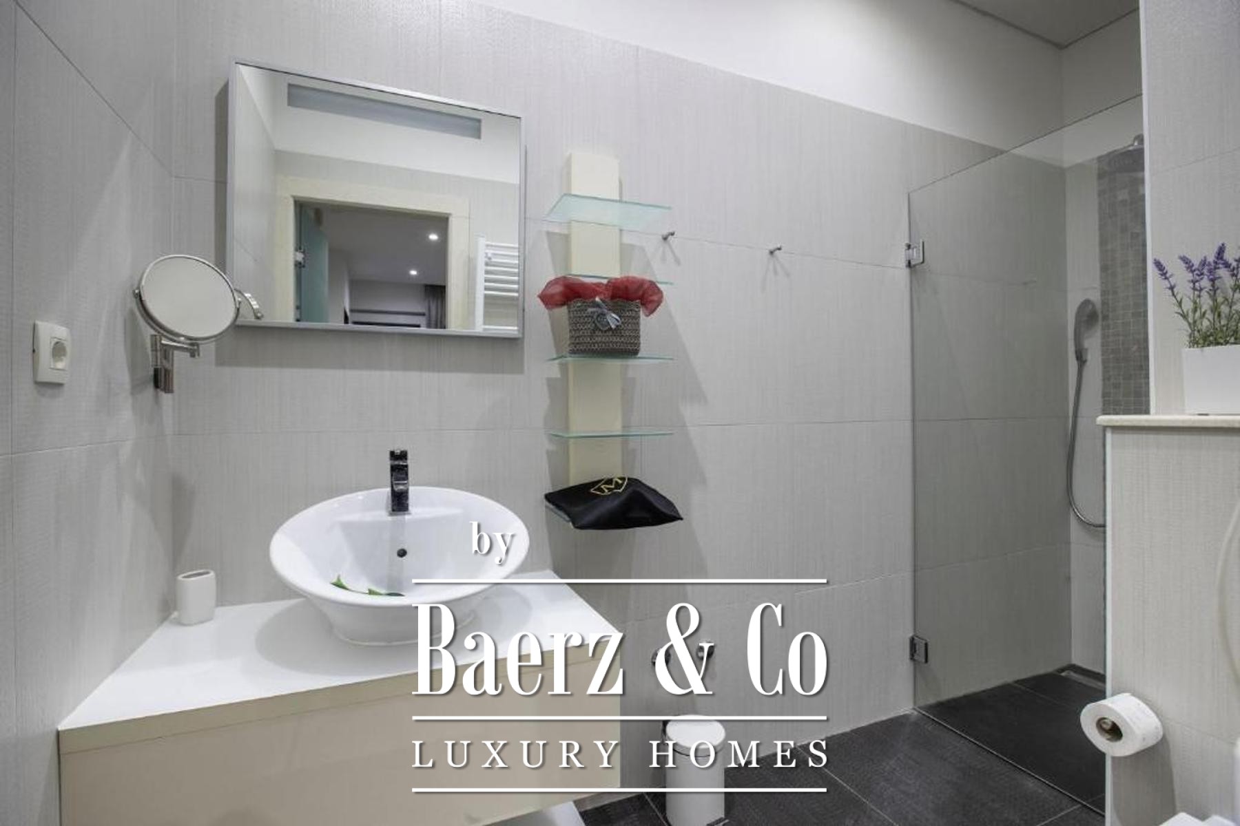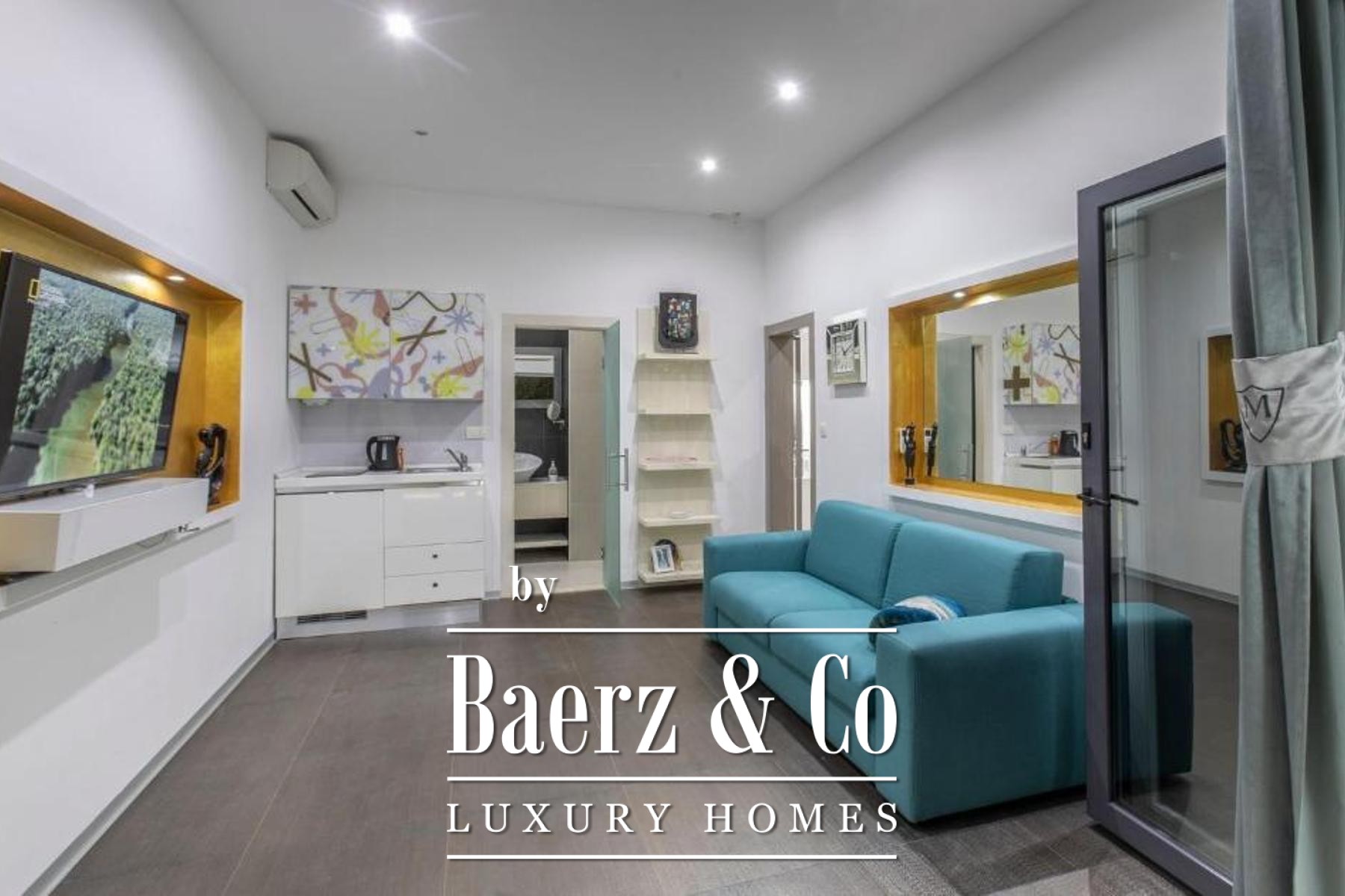 De bovenverdieping biedt een lichte leefruimte met keuken en eetgedeelte, twee slaapkamers en twee badkamers, waarbij elke hoofdruimte toegang biedt tot balkons met uitzicht op zee en zwembad. Flexibiliteit staat centraal, want de eerste verdieping kan worden gescheiden in zelfstandige appartementen om tegemoet te komen aan diverse woonwensen of voor eventuele gastverblijven. Verfijnde afwerkingen en hoogwaardige inrichting kenmerken elk detail, terwijl doordachte voorzieningen zoals een taverne met barbecue, een uitnodigende eet- en ontmoetingsruimte en een zonnige tuin bijdragen aan het wooncomfort. Drie parkeerplaatsen maken het geheel compleet, voor ontspanning en mogelijkheden aan de prachtige Kroatische kust.