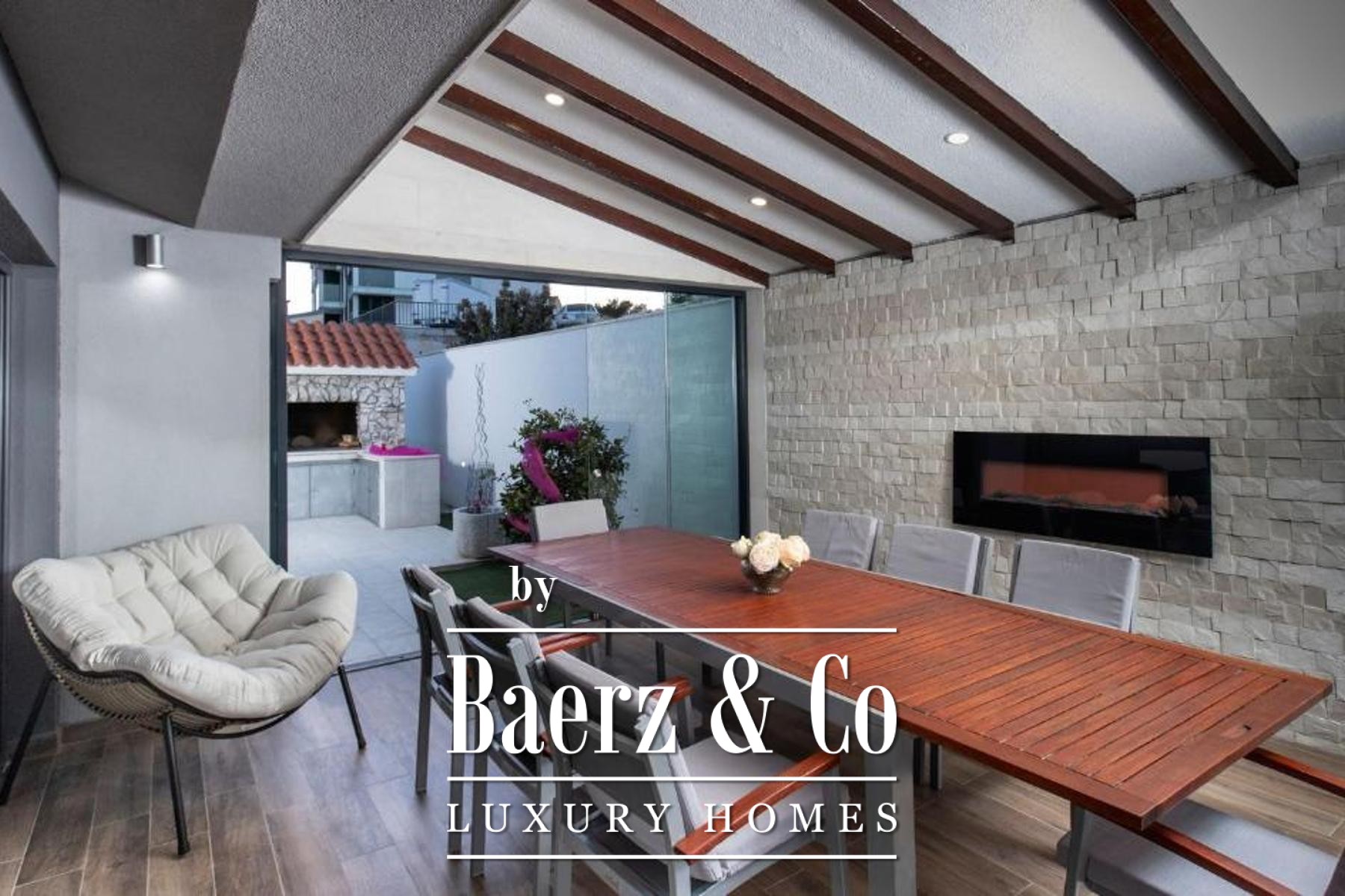 Huis Rogoznica met zeezicht en zwembad biedt een uitgebalanceerde combinatie van privacy en nabijheid tot de Adriatische kust, op slechts 100 meter van het strand en op korte loopafstand van het centrum van Rogoznica. Deze woning beschikt over een royale woonoppervlakte van 352 m², verdeeld over twee verdiepingen en gelegen op een perceel van 426 m². Elk appartement op de begane grond is ontworpen voor zelfstandigheid en comfort: het ene beschikt over een slaapkamer, een badkamer en een woonkamer, het andere over twee slaapkamers, een badkamer en een woonkamer. Beide appartementen openen naar een terras bij het zwembad, dat uitnodigt tot rustige of gezellige momenten onder de mediterrane hemel.
