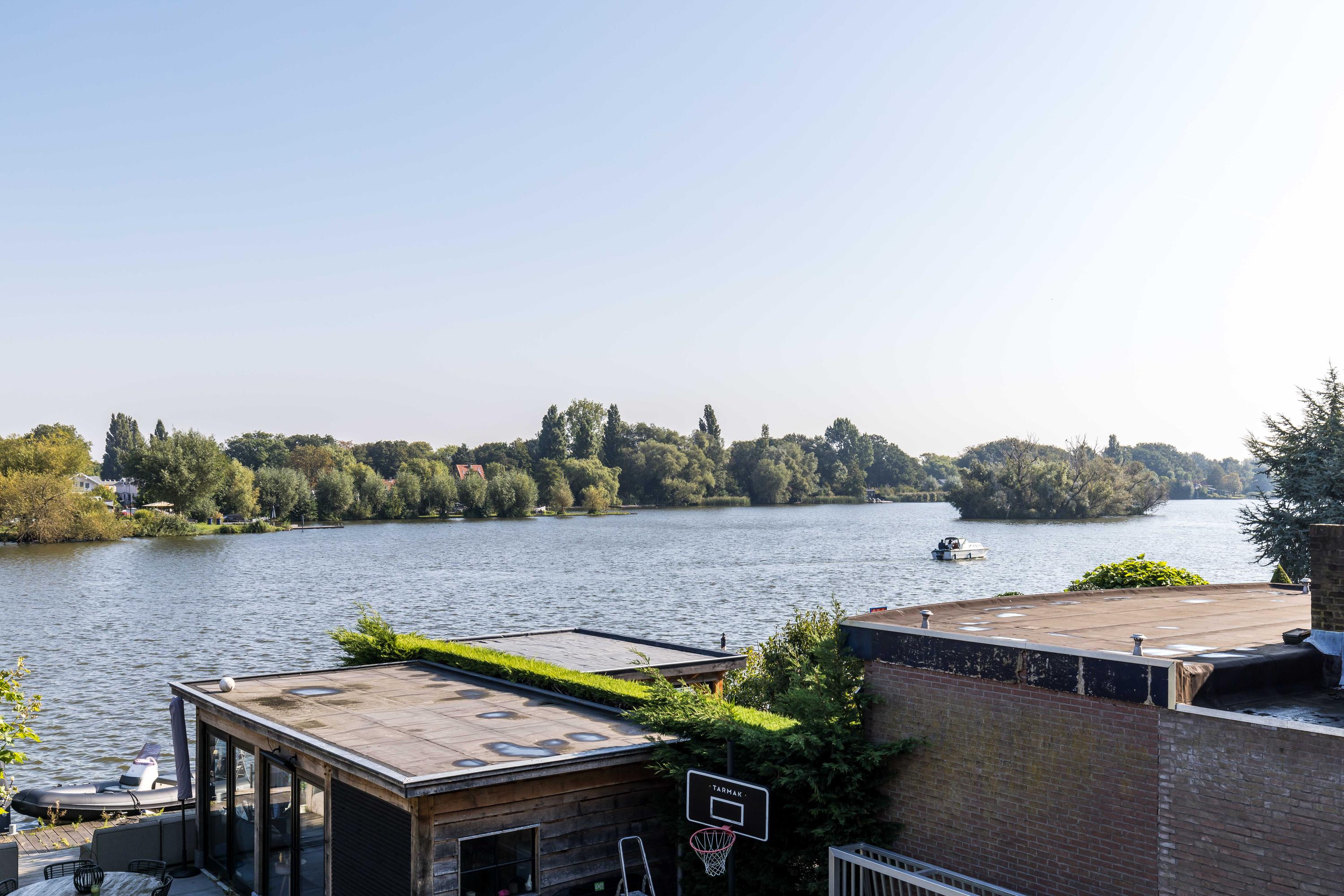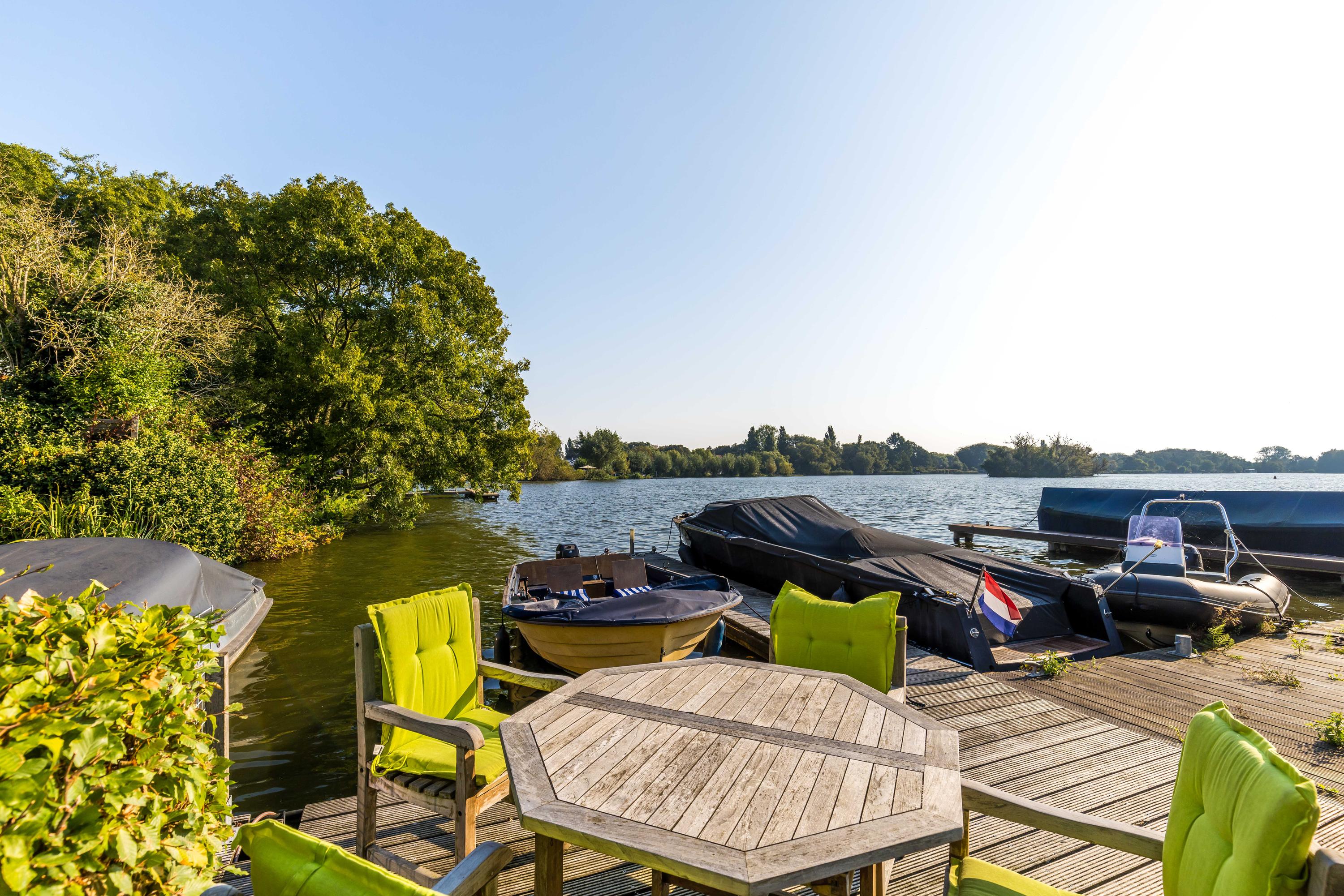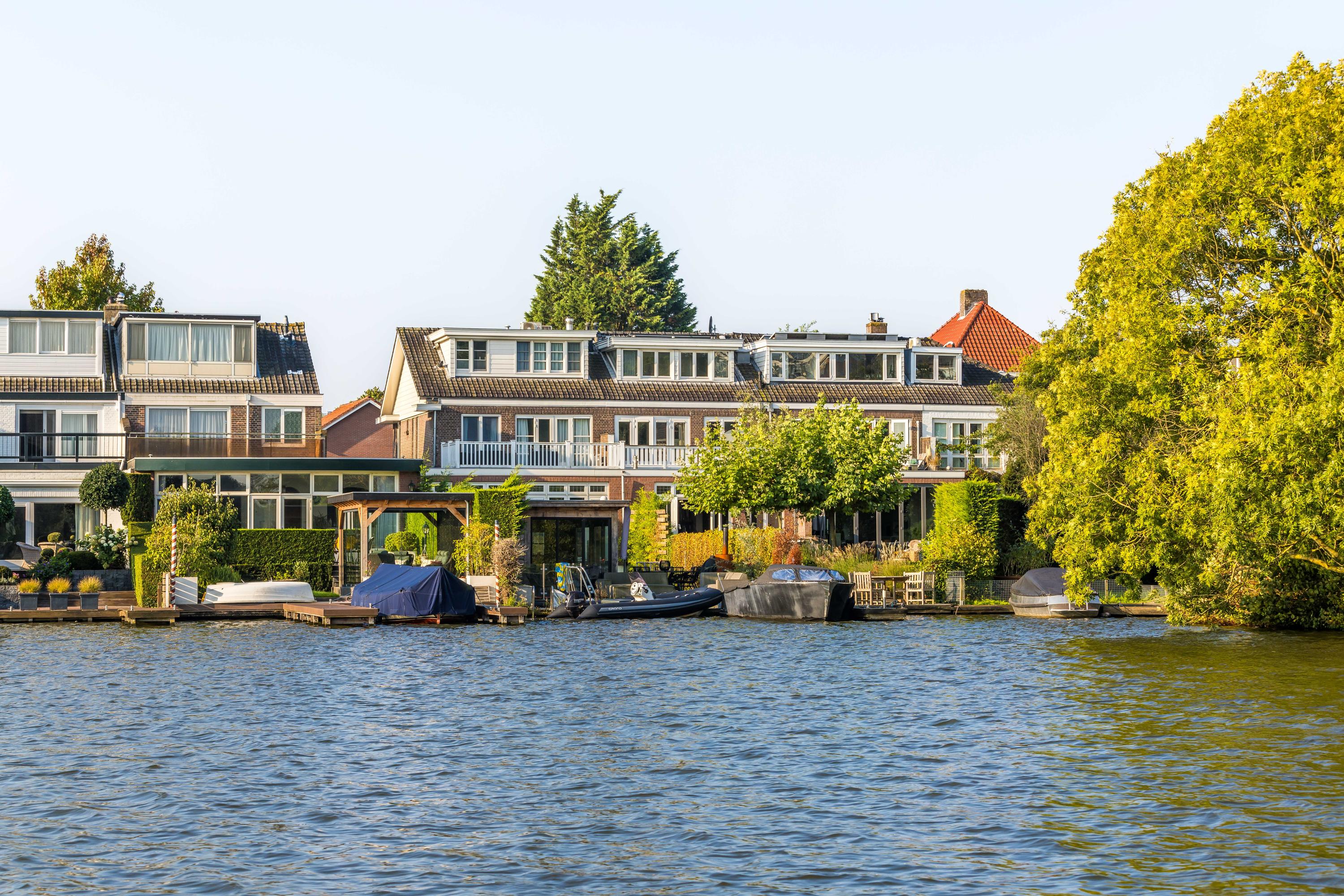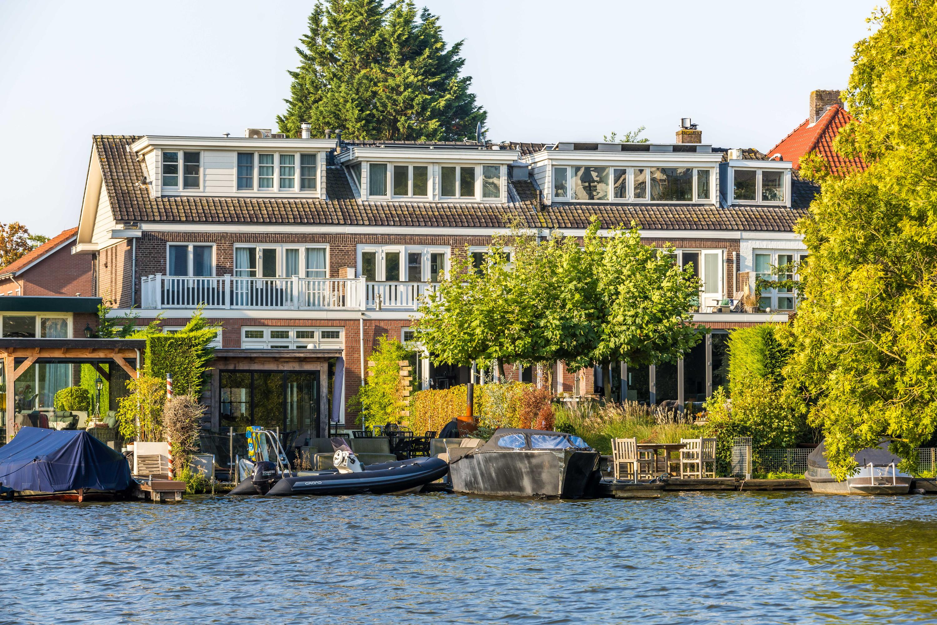 begane grond: entree, vestibule met originele marmeren lambrisering, granitovloer en glas-in-lood-raampjes en tochtdeur, hal met trapopgang, extra ruime toiletruimte met WC en fonteintje, dubbele deuren naar de living en woonkeuken, oorspronkelijk zat de keuken aan de achterzijde, maar thans bevindt de open keuken zich aan de voorzijde, waardoor de uitgebouwde woonkamer een breedte van bijna 6 meter heeft over de gehele breedte van het huis, de woonkamer is voorzien van een goed gepositioneerde gashaard waar je lekker omheen kunt zitten. Middels 2 Sola-tubes komt er verrassend veel extra daglicht in de woonkamer. Vanuit de zitkamer geven openslaande deuren toegang tot het onderheide terras en de achtertuin (eveneens grotendeels onderheid) met o.a. een terras/vlonder aan het water waar je heerlijk kunt vertoeven. aan de steiger is er plek voor 1 sloep/boot.