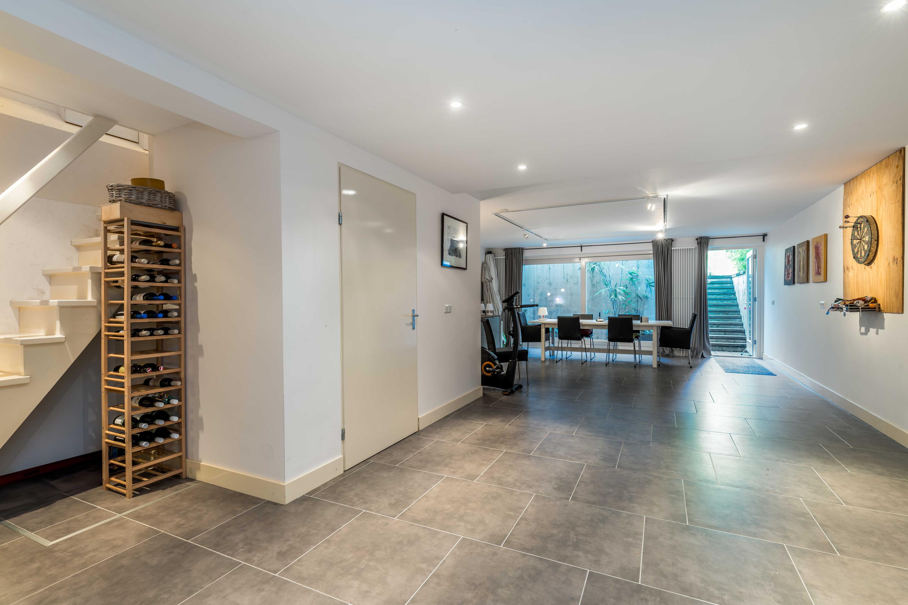 Souterrain: volwaardige verdieping met een comfortabele hoogte, multifunctioneel te gebruiken als domein van de kinderen, kantoor aan huis, thuisbioscoop, gastenverblijf, etcetera. Er bevindt zich een 3e badkamer voorzien van douche, toilet en wastafel. Aan de voorzijde bevindt zich een bergruimte cq. klusruimte. aan de achterzijde is er toegang tot de achtertuin.