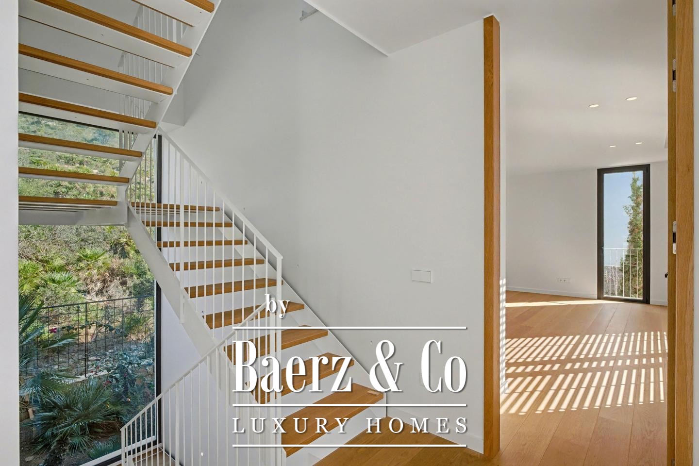 De begane grond biedt een naadloze overgang tussen keuken en lounge, die uitkomt op met teak beklede terrassen voor een onbegrensd genot van het geprezen klimaat van Sant Elm, het hele jaar door. Op dit niveau bevinden zich twee slaapkamers en twee badkamers, stuk voor stuk afgewerkt met natuurlijke materialen en subtiele details. Op de bovenverdieping bevinden zich twee master suites met elk een eigen badkamer. Eén suite beschikt over een balkon, de andere over een royaal terras met uitzicht op het weelderige landschap. Aan de achterzijde grenst het perceel aan een beschermd natuurgebied, wat volledige privacy en een blijvende connectie met het buitenleven garandeert.