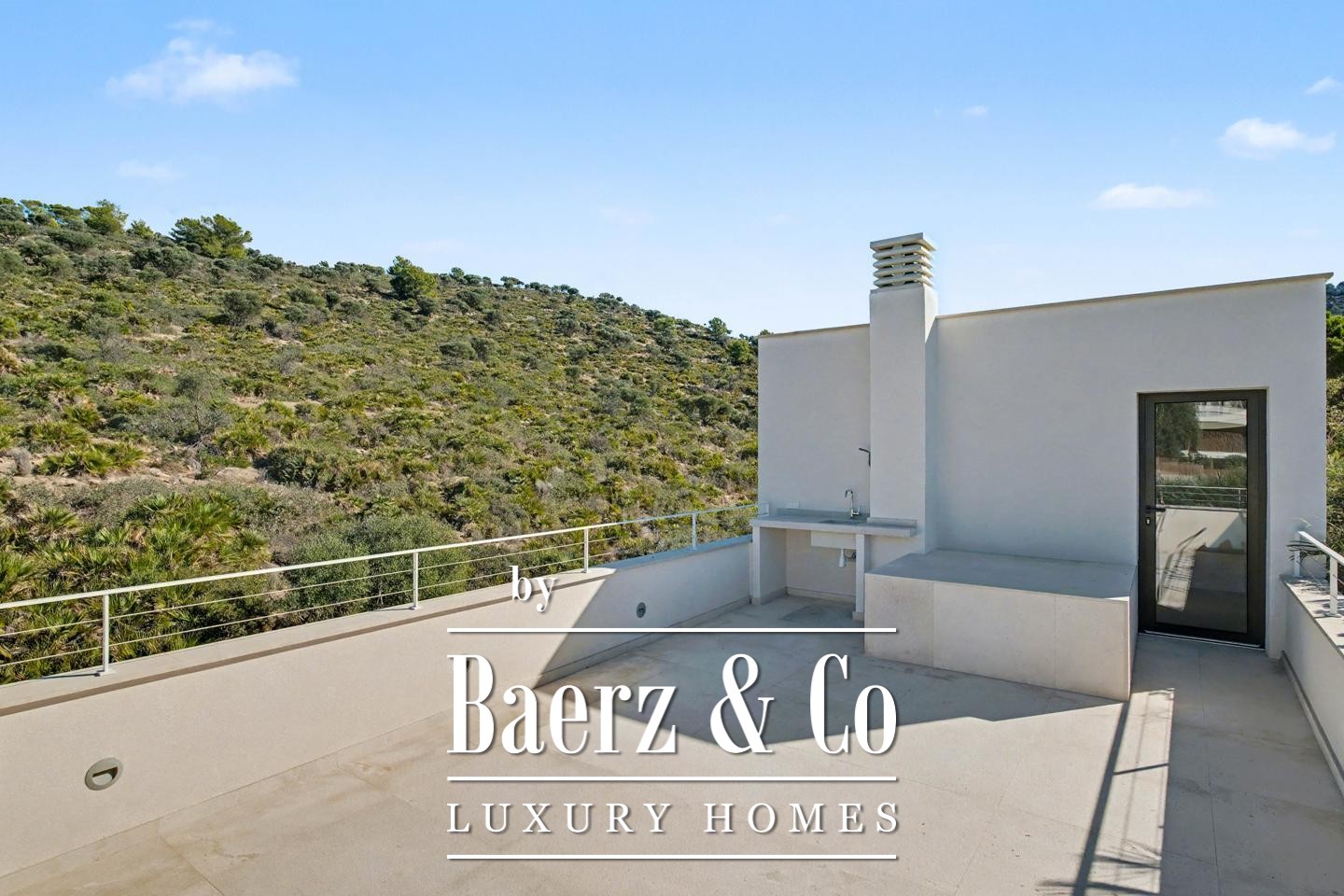 Villa Sant Elm staat als een toonbeeld van eigentijdse architectuur, verzacht door de ongedwongen mediterrane sfeer. Deze nieuw gebouwde villa, met 301 m² woonoppervlak op een perceel van 757 m², is klaar om nieuwe eigenaren te verwelkomen in een van de meest begeerde enclaves van Mallorca. De elegante witte lijnen en zorgvuldig geïntegreerde teakhouten accenten stralen ingetogen luxe uit, gecombineerd met een ontwerp dat het natuurlijke licht en het ritme van het eilandleven omarmt.