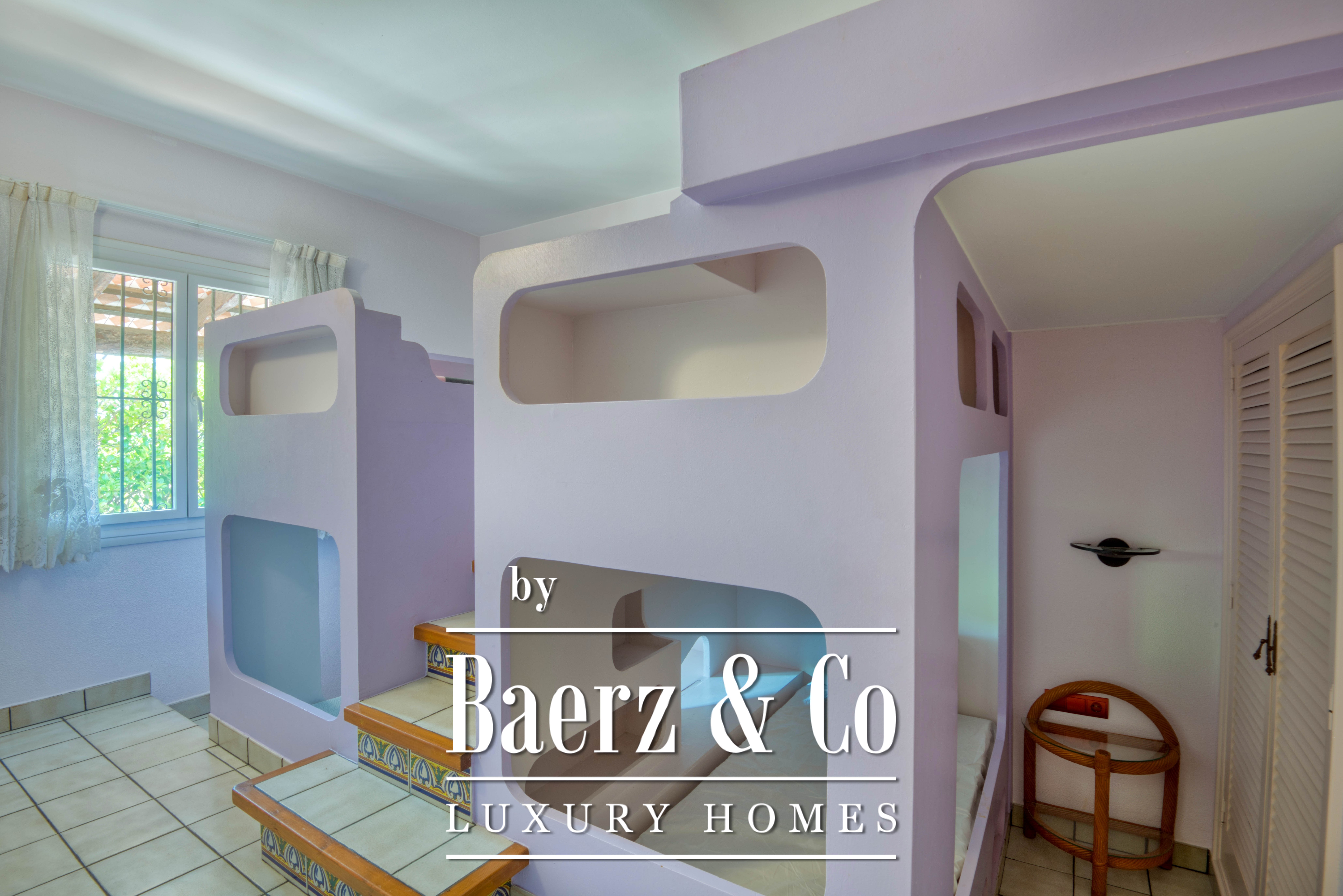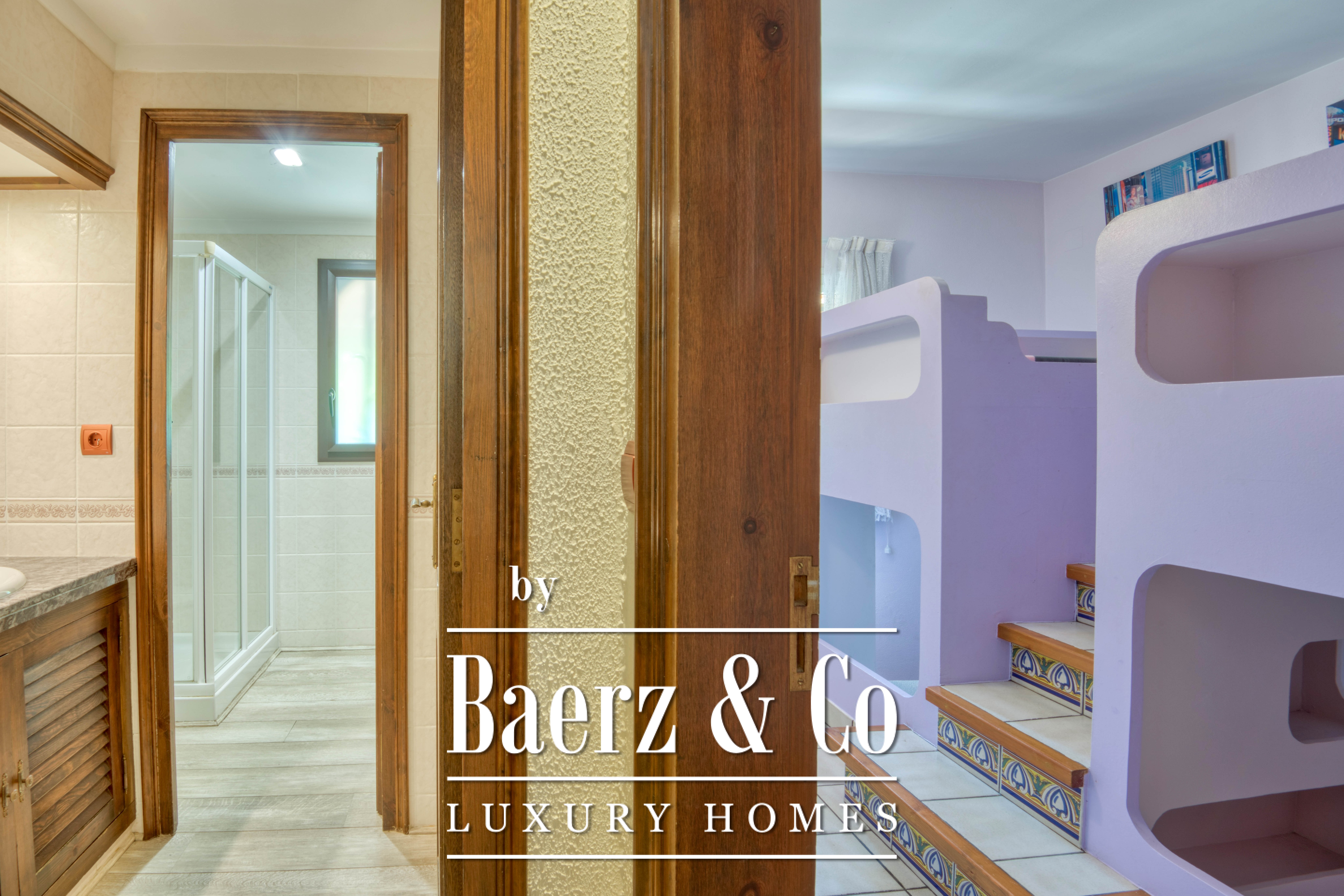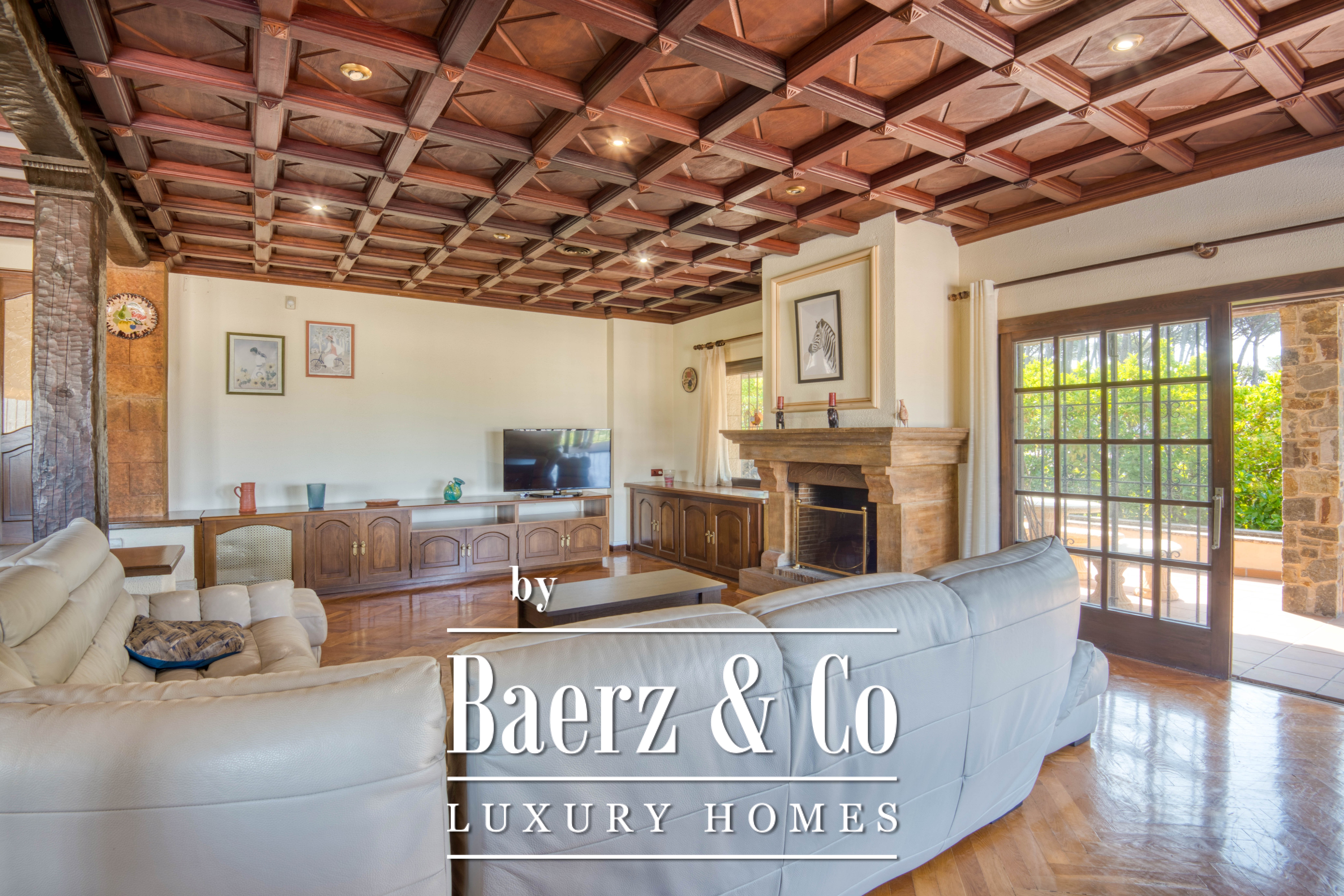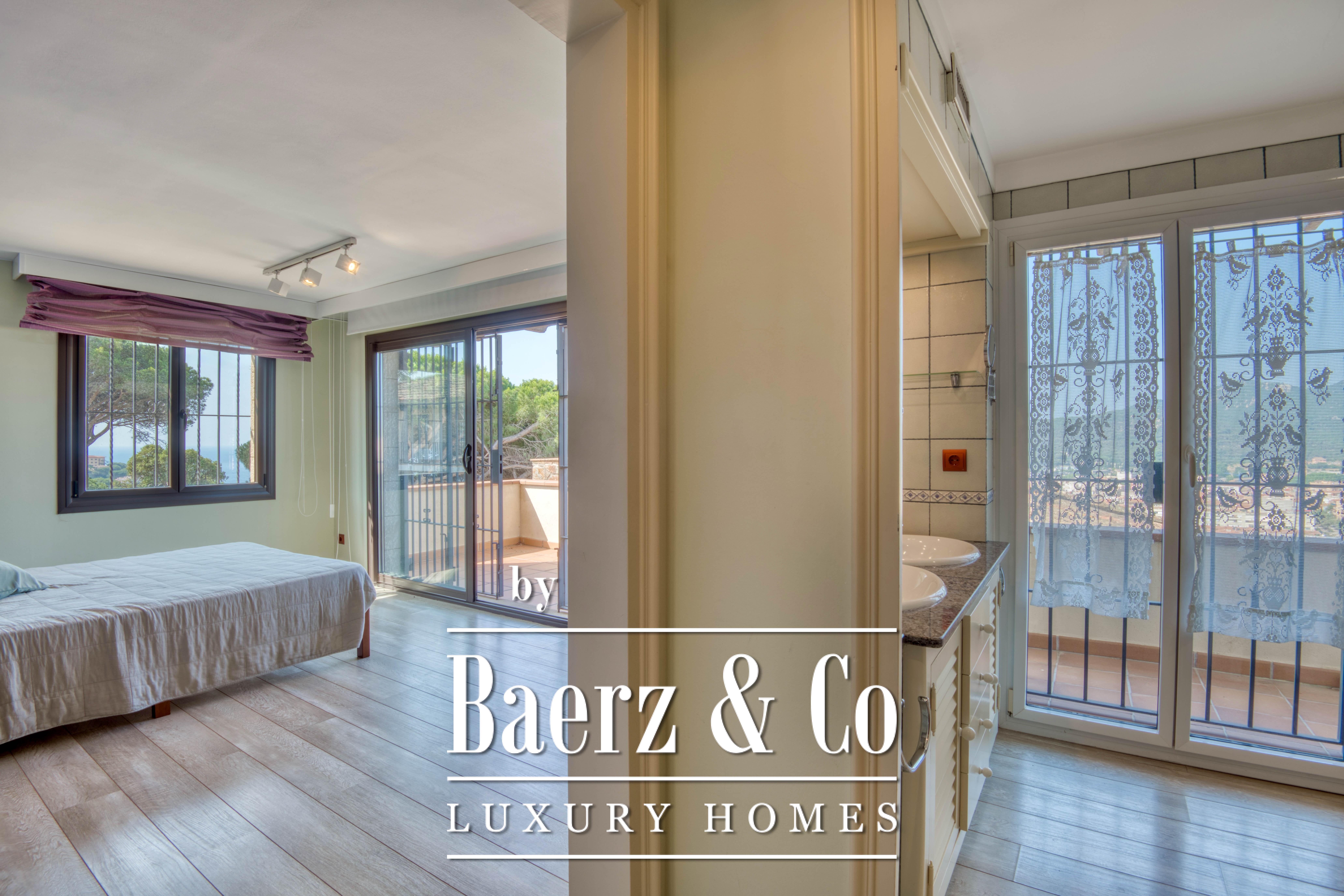 Buiten nodigen een royaal zwembad en een privétennisbaan uit tot ontspanning en sportiviteit, beschut door volwassen begroeiing. Het uitzicht reikt ver over de Middellandse Zee, het Sant Feliu-klooster, de Sant Elm-berg en de Ardenya-richel, telkens wisselend met het licht. Met een garage, airconditioning, barbecuezone en speelkamer ademt deze luxe villa te koop in Sant Feliu de Guixols ingetogen luxe en zeldzame authenticiteit, perfect geschikt voor permanent wonen of als gekoesterd toevluchtsoord.