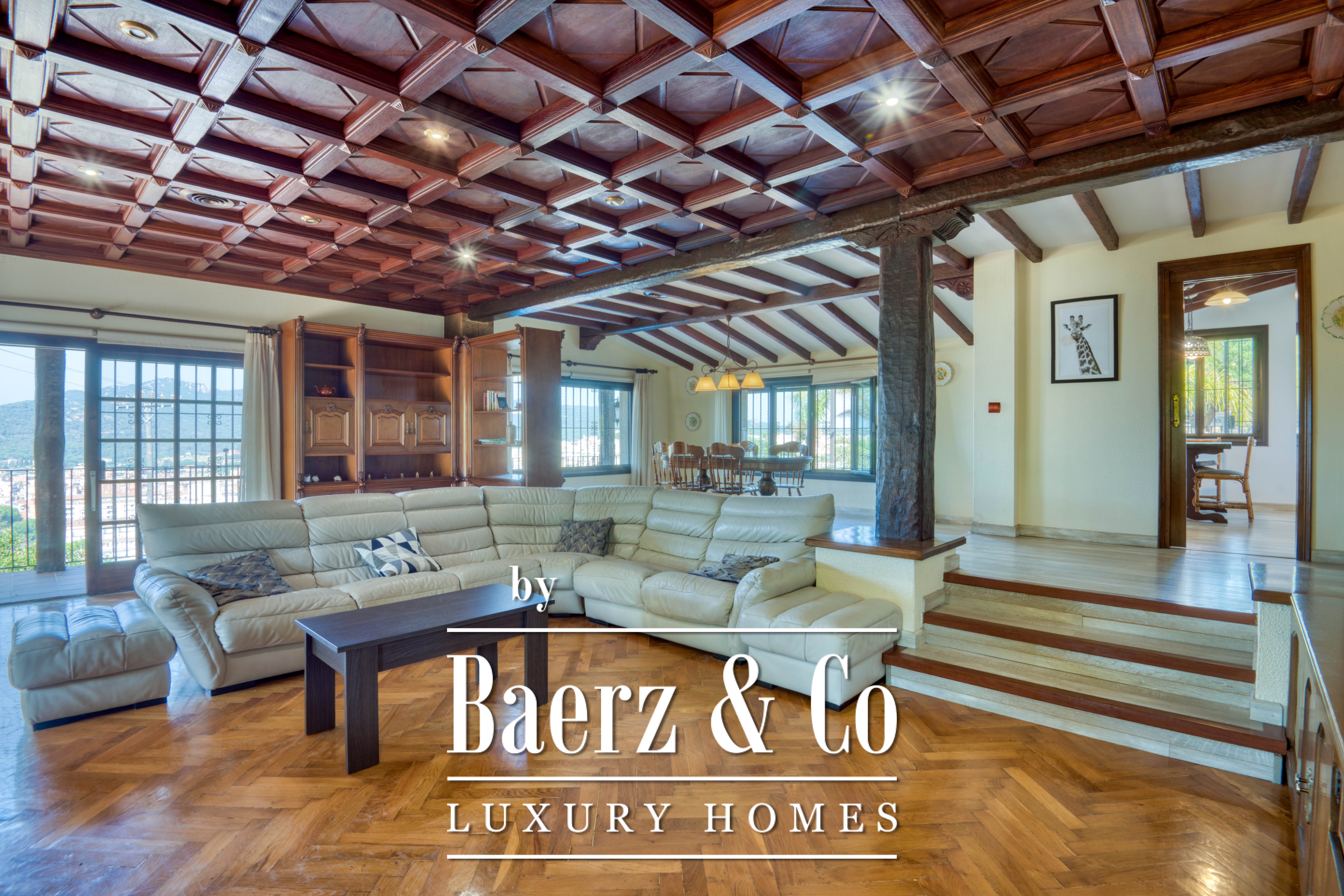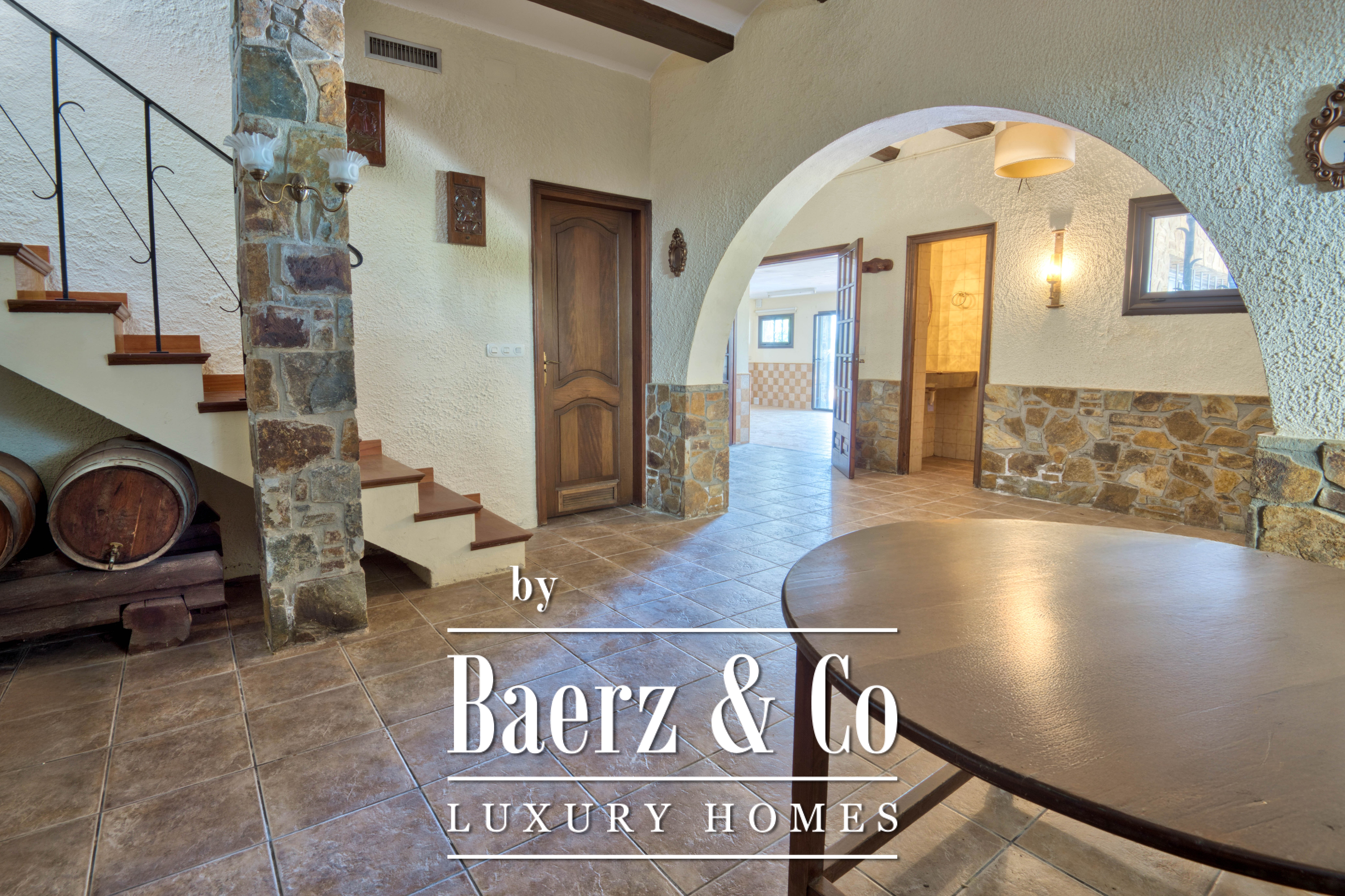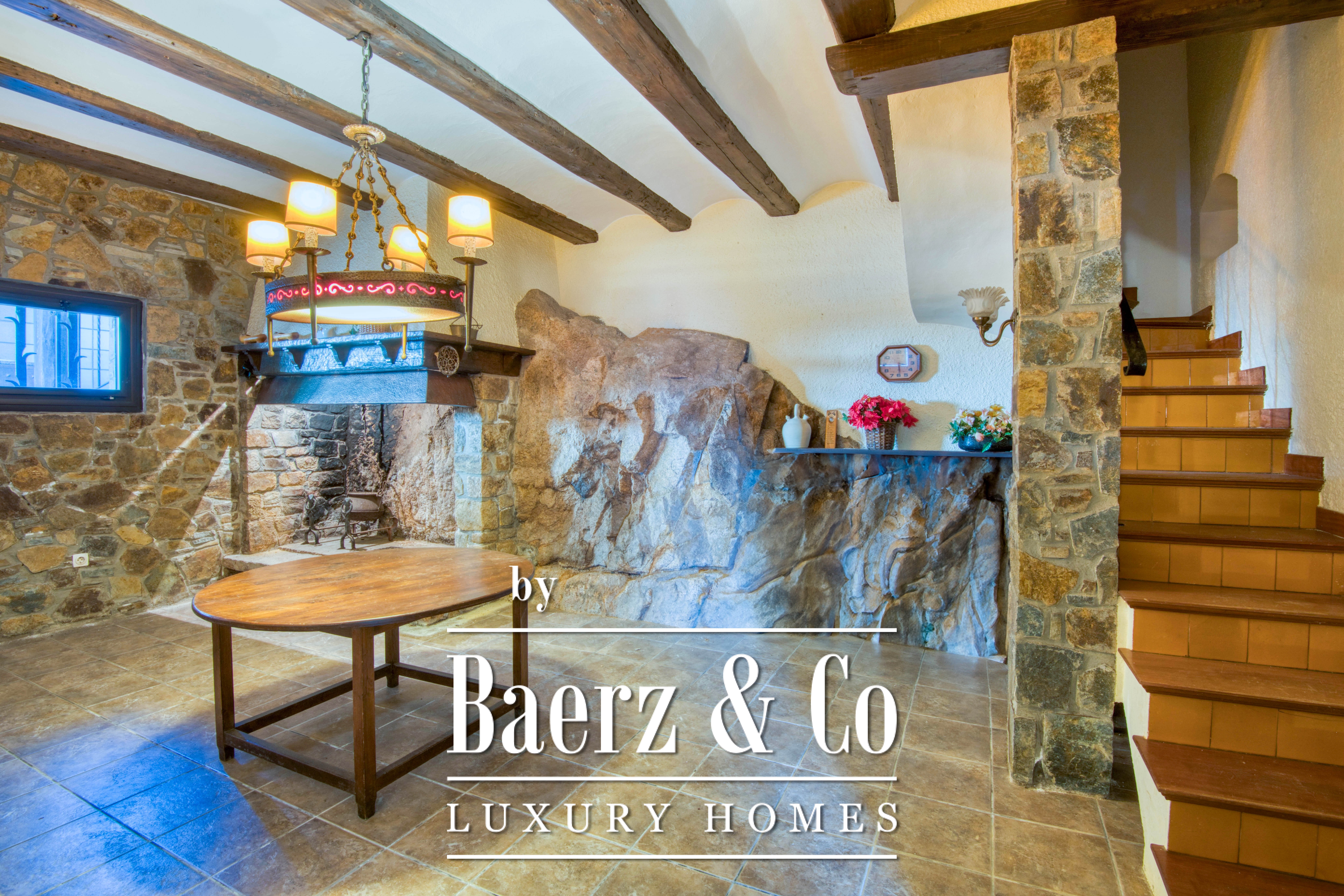 Deze rustieke villa in Sant Feliu de Guixols belichaamt de mediterrane levensstijl en ligt op een discreet perceel van 1.725 m² met panoramisch uitzicht op zee en de bergen. De 689 m² woonoppervlakte is doordacht ingedeeld en combineert royale proporties met een intieme sfeer in iedere ruimte. Zeven slaapkamers—vijf dubbel en twee enkel—bieden stijlvol comfort, aangevuld met drie fraai afgewerkte badkamers en een gastentoilet die comfort en praktisch gebruik benadrukken.