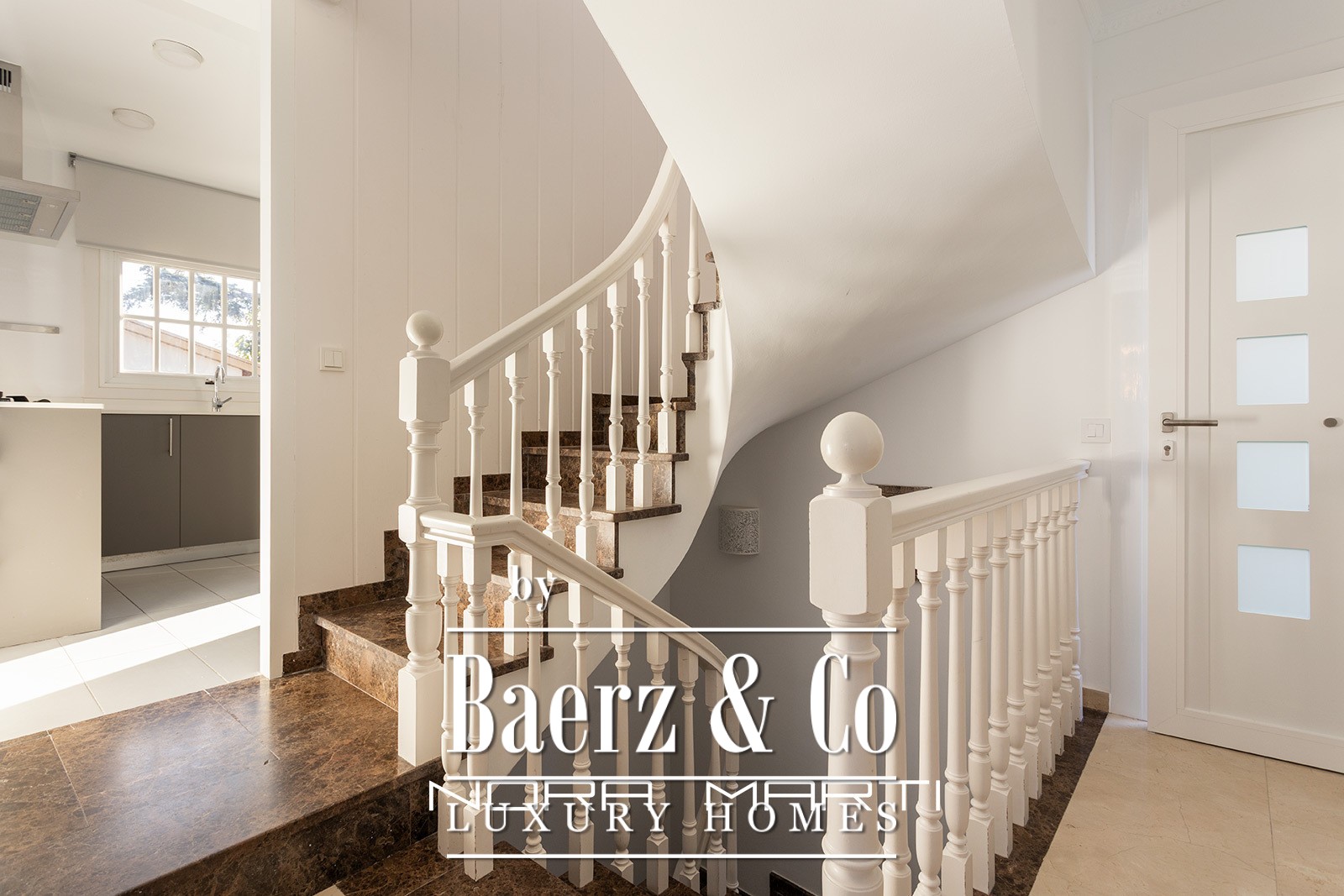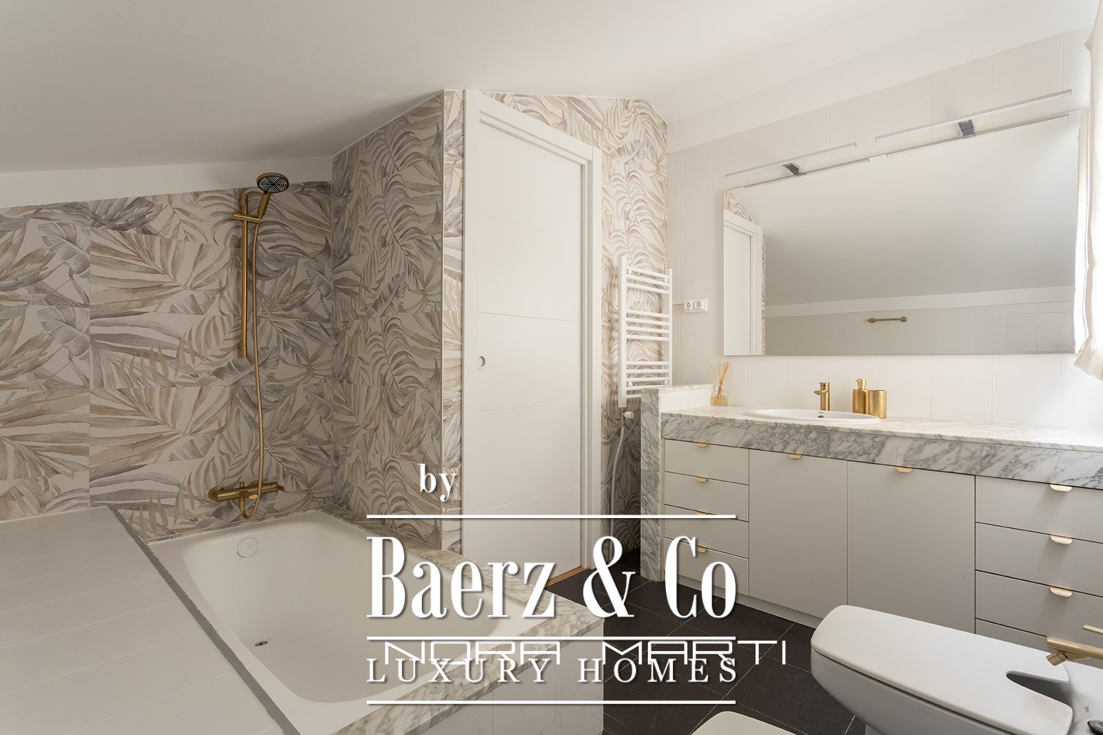 Vrijstaande woning in Sant Just Desvern combineert privacy, royale proporties en verfijnde functionaliteit in een rustige residentiële buurt. Deze volledig gerenoveerde woning uit 1989 biedt 205 m² verdeeld over drie zorgvuldig ingedeelde woonlagen, gelegen op een perceel van 247 m² dat is ontworpen voor een naadloze overgang tussen binnen- en buitenleven. De zes slaapkamers en drie badkamers bieden uitzonderlijke flexibiliteit en zijn ideaal voor grote gezinnen of voor wie waarde hecht aan een aparte werk- of creatieve ruimte.