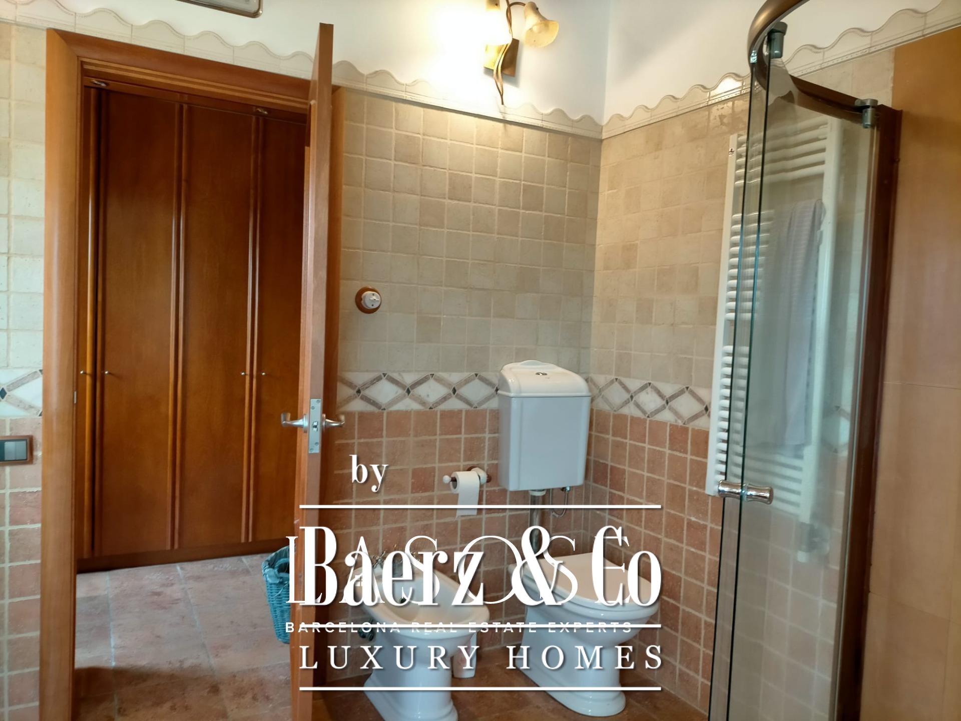 Buiten is de villa omgeven door een weelderige tuin met volwassen mediterrane beplanting, gazon en een eeuwenoude olijfboom, die het zwembad omlijst met natuurstenen randen en een waterval, en zo het ideale decor biedt voor ontspannen middagen en stijlvolle bijeenkomsten. Praktische ruimtes zijn een ruime privé garage en bergruimte, geschikt voor auto’s en seizoensgebonden bezittingen. Airconditioning, verwarming, beveiligingssystemen en een barbecue verhogen het comfort en gebruiksgemak.
