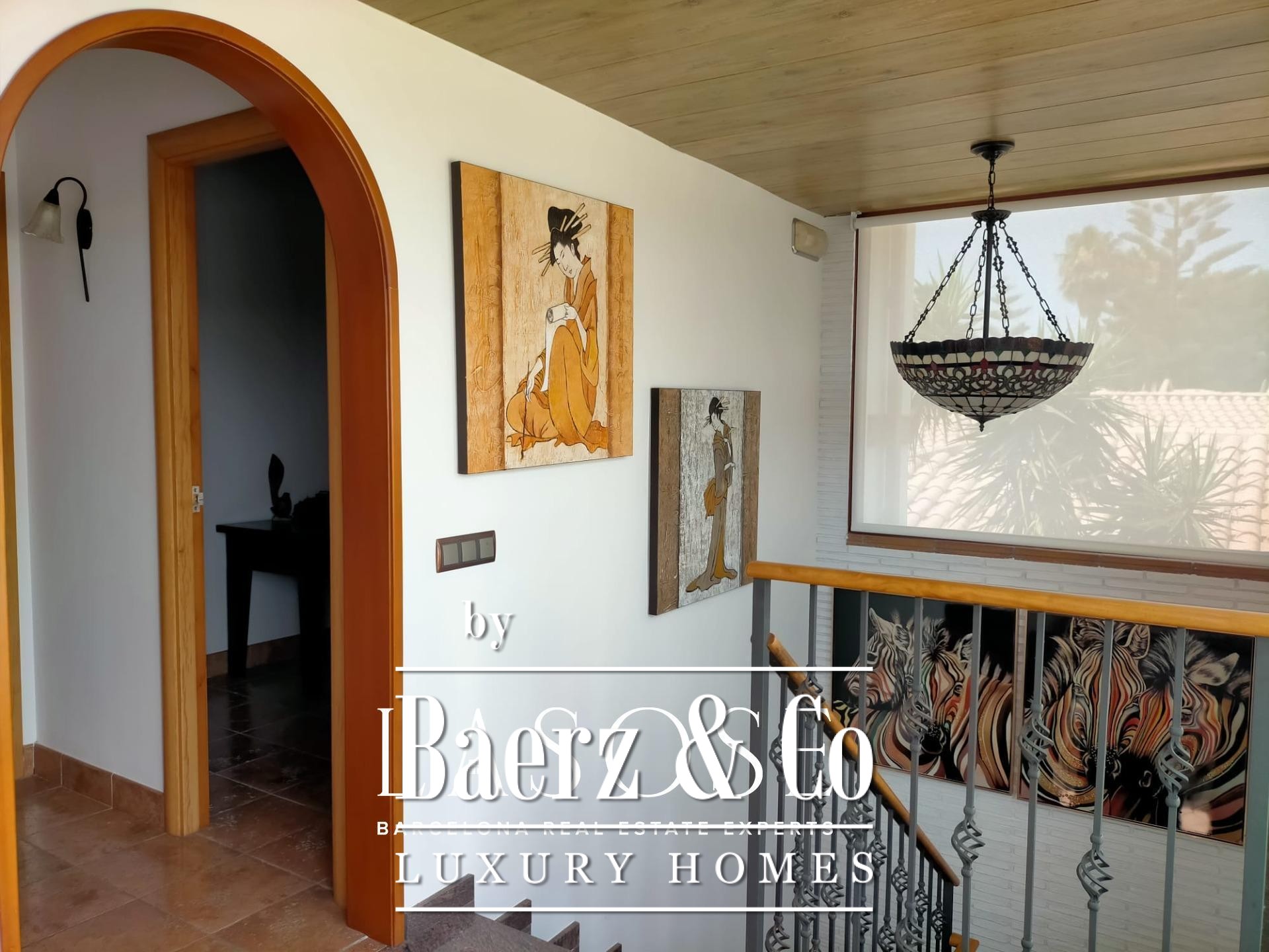 Villa Sant Pere de Ribes is rustig gelegen in de gewaardeerde woonwijk Els Cards, tussen Sitges en Sant Pere de Ribes, waar privacy en panoramisch uitzicht iedere woonervaring uniek maken. Deze villa met vijf slaapkamers en drie badkamers combineert traditionele Spaanse architectuur met eigentijdse verfijning. De recent gerenoveerde binnenruimtes behouden authentieke details zoals bogen en natuurlijke texturen, gecombineerd met strakke moderne lijnen en warme tinten. De open indeling van de begane grond verbindt keuken, eetkamer en woonkamer naadloos, met een overvloed aan daglicht door ramen aan twee zijden. Een karakteristieke open haard vormt het hart van de woonkamer en creëert het hele jaar door een uitnodigende plek om samen te komen.