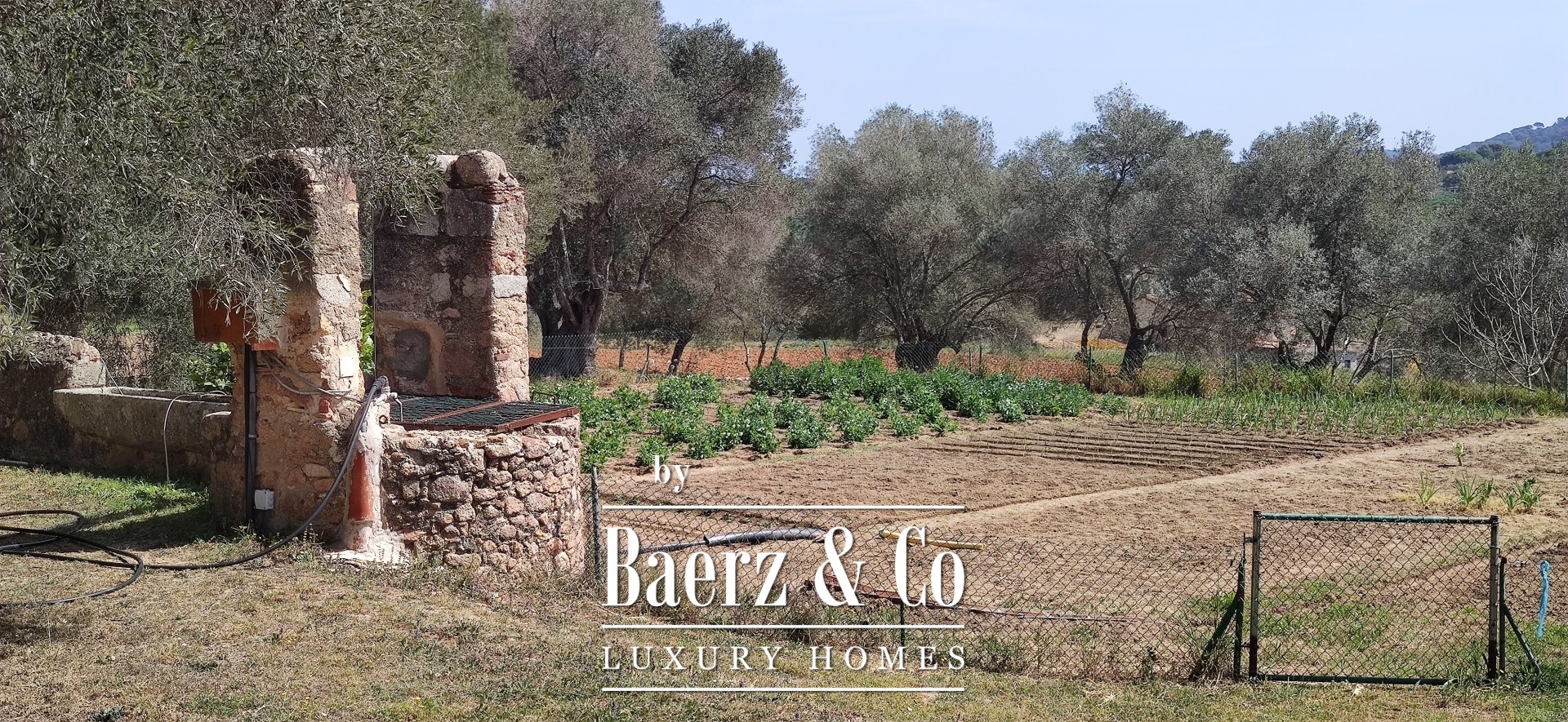 Gelegen op een zuidelijk georiënteerde heuvelrug heeft de boerderij een indrukwekkend uitzicht op het gebergte en op landschappen gevormd door de tijd. Het terrein is gelaagd met betekenis, omzoomd door prehistorische menhirs en gedomineerd door een nabijgelegen kasteel uit de vijftiende eeuw. Twee privéwaterputten en twee stille lagunes onderstrepen de zelfvoorzienendheid en het agrarische karakter van het domein.