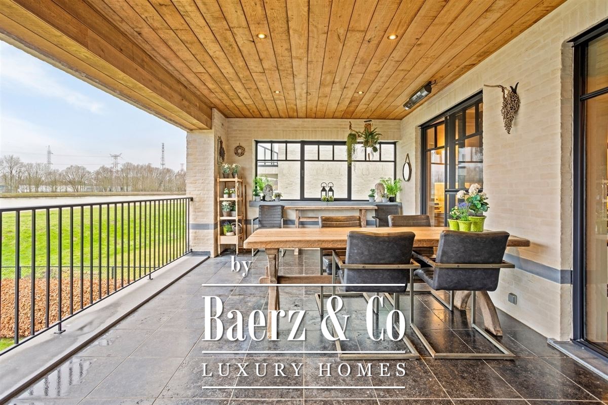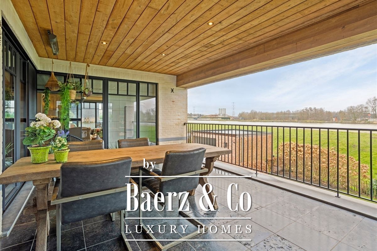 Dit duplexappartement in Schilde is rustig gelegen net buiten het dorpscentrum, in Zandhoven maar vlot bereikbaar vanuit Schilde, en biedt een weids, ononderbroken uitzicht over het Albertkanaal. De woning combineert ingetogen design met op maat gemaakt comfort over een woonoppervlakte van 364 m². Bij aankomst leidt een fraai aangelegde voortuin naar meerdere parkeermogelijkheden, waaronder een garage met automatische poort, carport en een ruime kelder van 182 m². De private inkomhal, bereikbaar via lift of trap, geeft toegang tot een doordacht ingerichte binnenruimte met eikenhout en natuursteen als sfeervolle accenten.