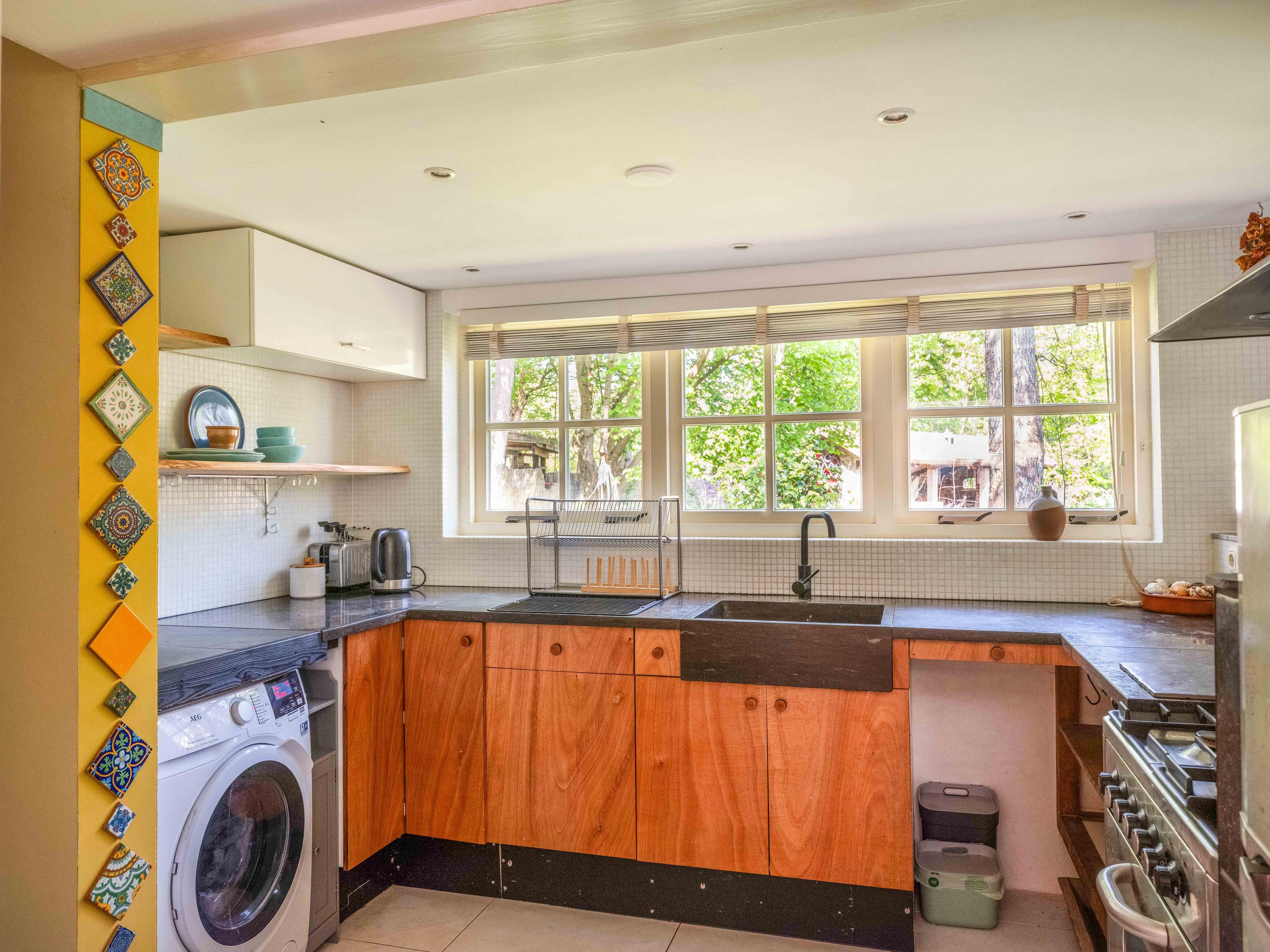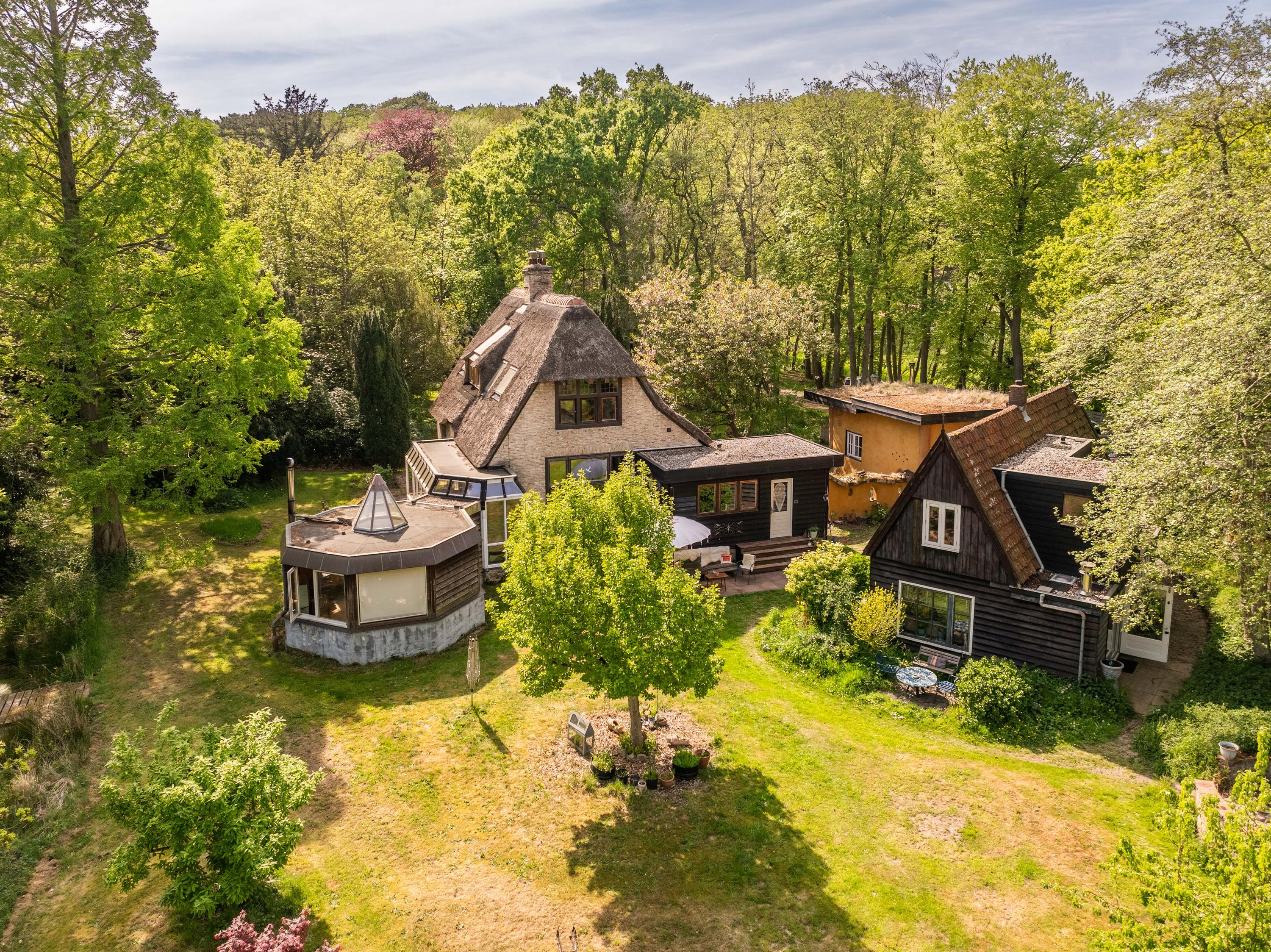 Via een langgerekt bospad bereikt u dit markante pand, gebouwd in 1935 met 17e-eeuwse bouwmaterialen naar een ontwerp van architect Royaards. Het huis ademt karakter en historie: robuuste open haarden, die momenteel niet functioneel zijn maar verbouwd mogen worden, antieke elementen zoals robuuste eikenhouten balken en vloeren, en lemen muren die zorgen voor een behaaglijk woonklimaat en een weldadige nachtrust. Hier ervaart u de luxe van stilte, ruimte en privacy, omgeven door de geur van het bos, het zachte ruisen van de bomen én het gezang van talloze vogels – dit is werkelijk een vogelparadijs.