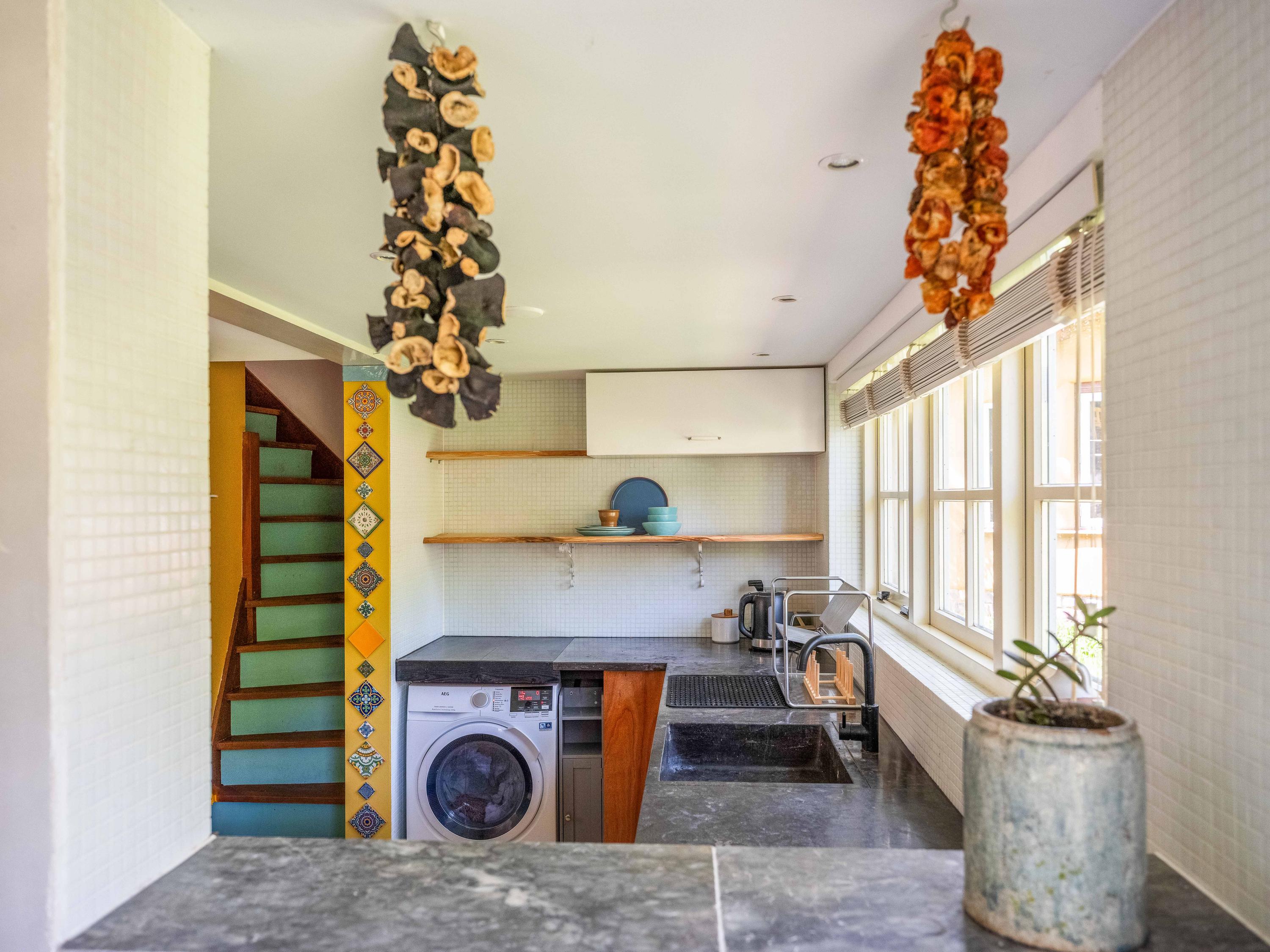 We nemen u alvast mee naar binnen in het hoofdhuis. De begane grond verwelkomt u met een lichte entree, open trap en toilet. De keuken, bijkeuken en kelder bieden volop mogelijkheden. De aangebouwde werkkamer is een fijne en inspirerende ruimte. De woonkamer aan de tuinzijde heeft een sfeervolle schouw, terwijl de woonkamer aan de voorzijde beschikt over een tweede open haard en een opkamer.