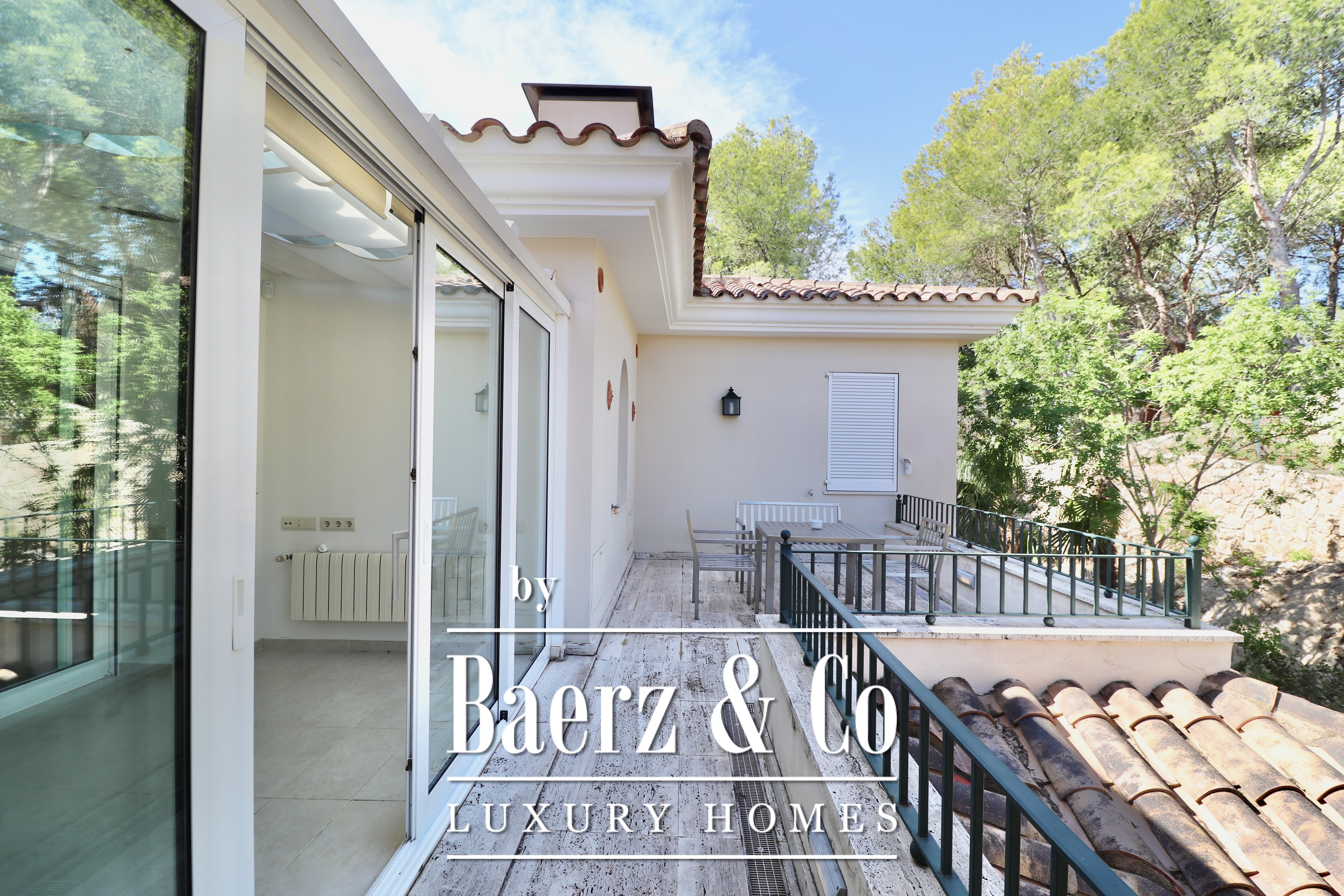 De bovenste verdieping is gericht op rust, met vier suites, elk voorzien van dressing en privéterras tegen het mediterrane decor. De benedenverdieping verrijkt het dagelijks leven met een fitnessruimte, sauna, wijnkelder met eetgedeelte, een extra slaapkamer, wasruimte en een garage met plaats voor acht auto's. Hoogwaardige materialen, marmeren vloeren, luxueuze timmerwerken en subtiele domotica kenmerken elk detail. Op slechts enkele minuten van het centrum van Sitges en de zee biedt deze luxe villa een comfortabel, privé en stijlvol leven.