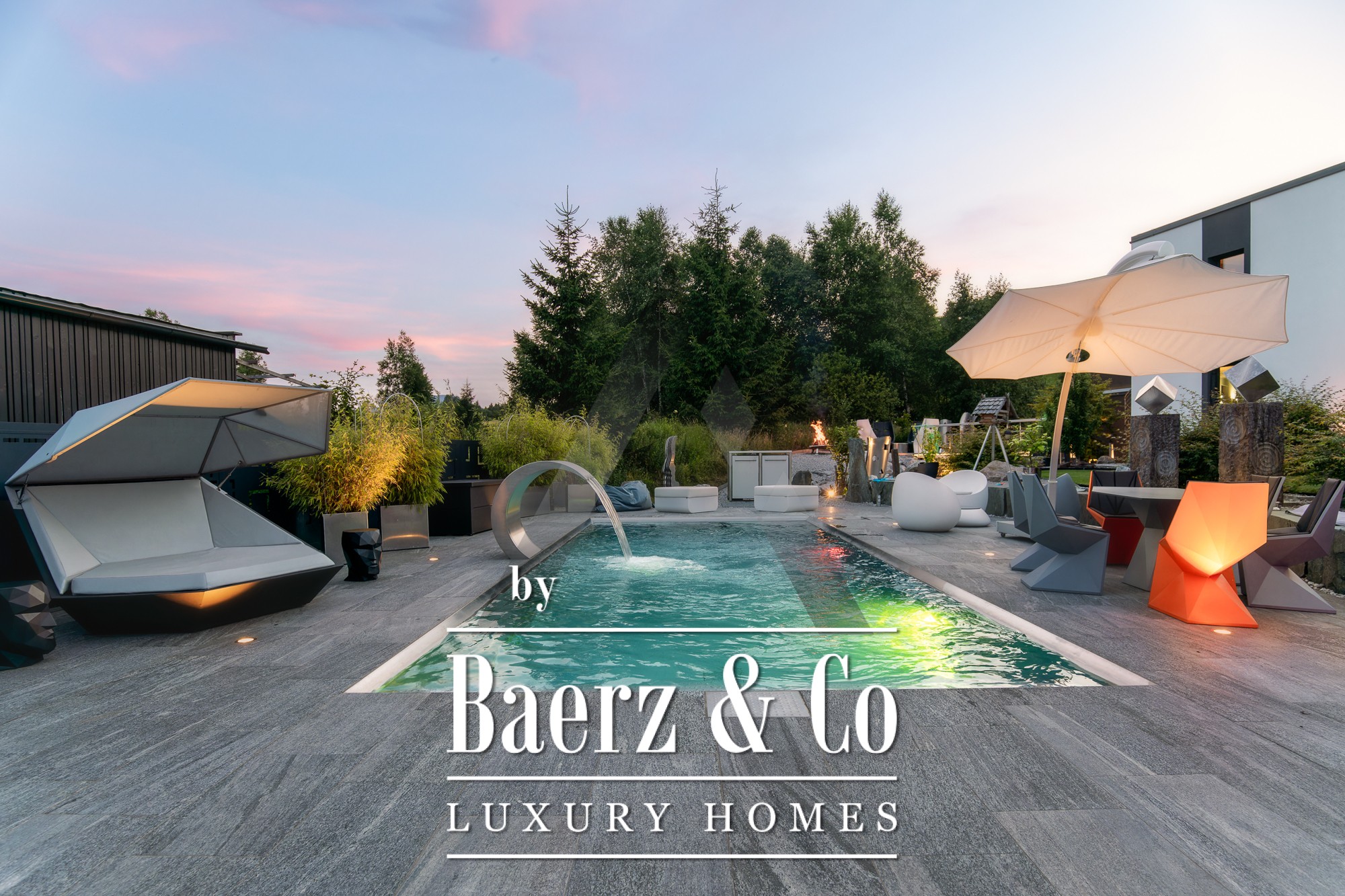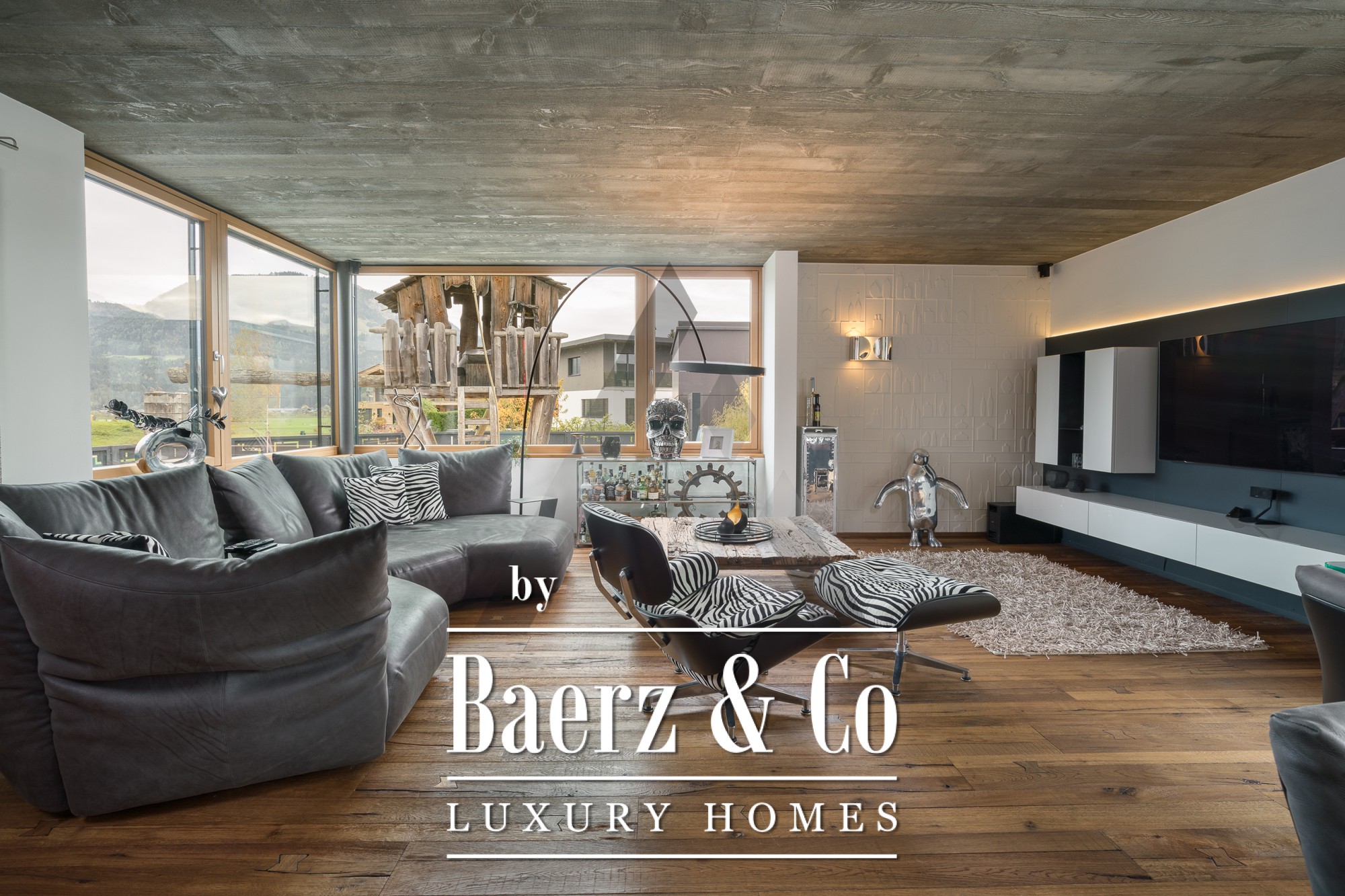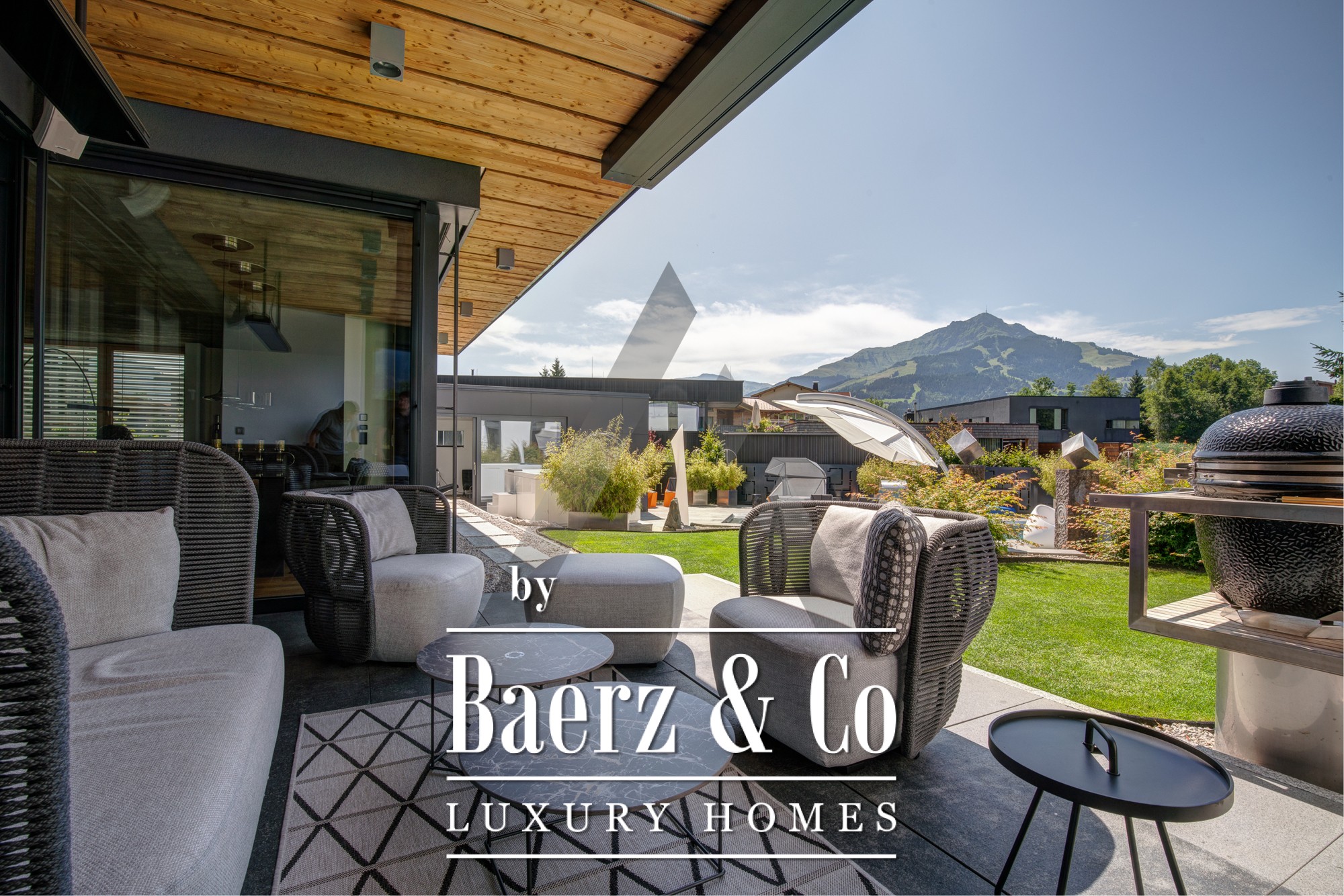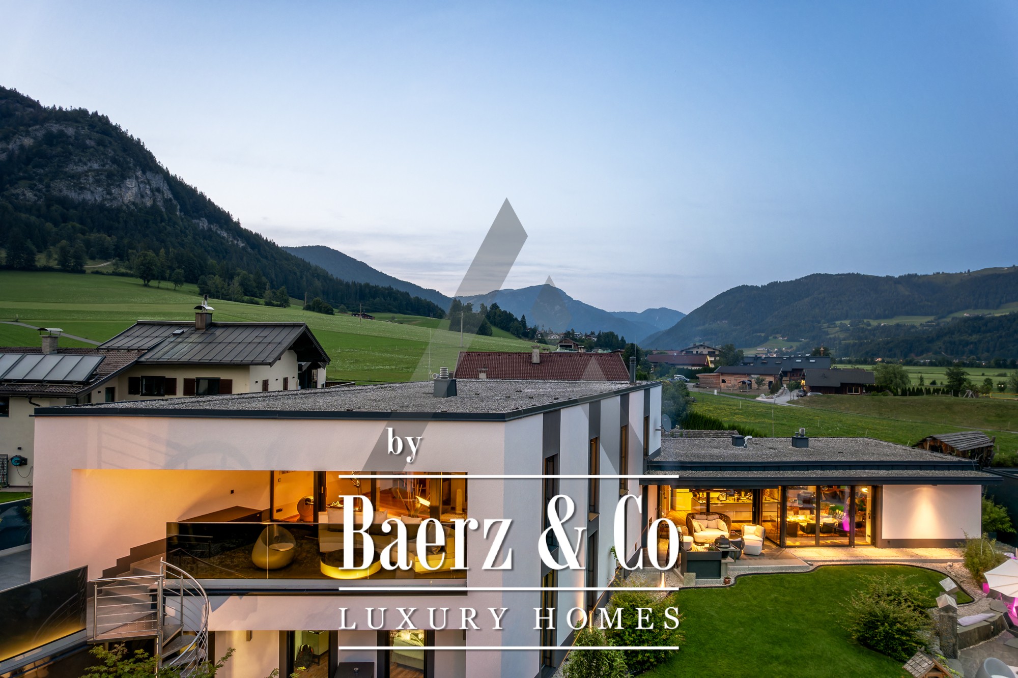 Vrijstaande woning St. Johann in Tirol is gelegen op een rustige, zonnige locatie met een weids uitzicht op de Kitzbüheler Horn en de Wilder Kaiser. Deze eigentijdse villa biedt 418 m² woonoppervlak op een perceel van 1.186 m² en belichaamt het verfijnde alpine leven. De idyllische tuin beschikt over een vijver, aangelegde beekjes, royale terrassen en een panoramisch berglandschap. Buiten geniet u van een roestvrijstalen zwembad, een Treesse designer whirlpool en een sauna, ideaal voor ontspannen ochtenden en verkwikkende middagen.