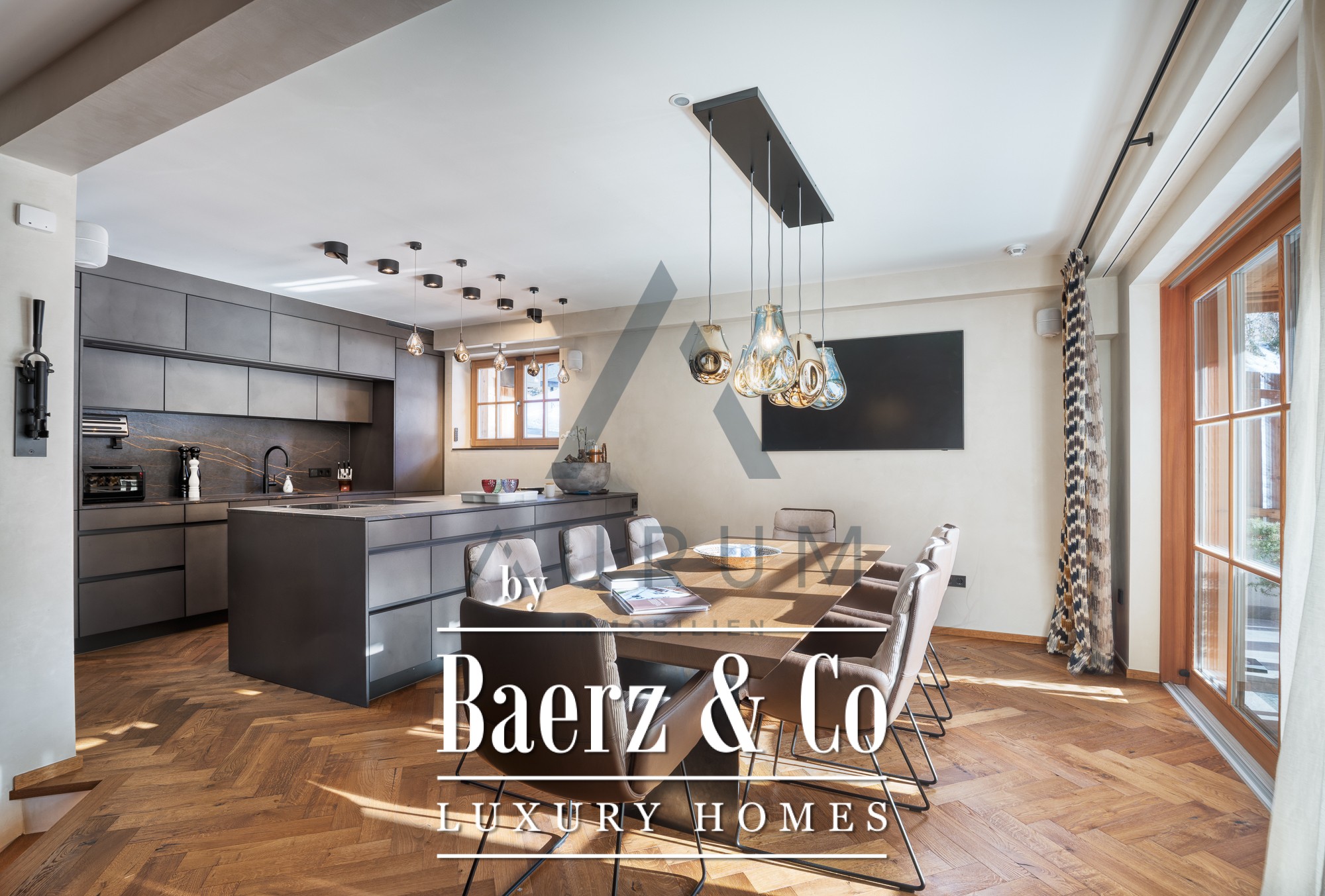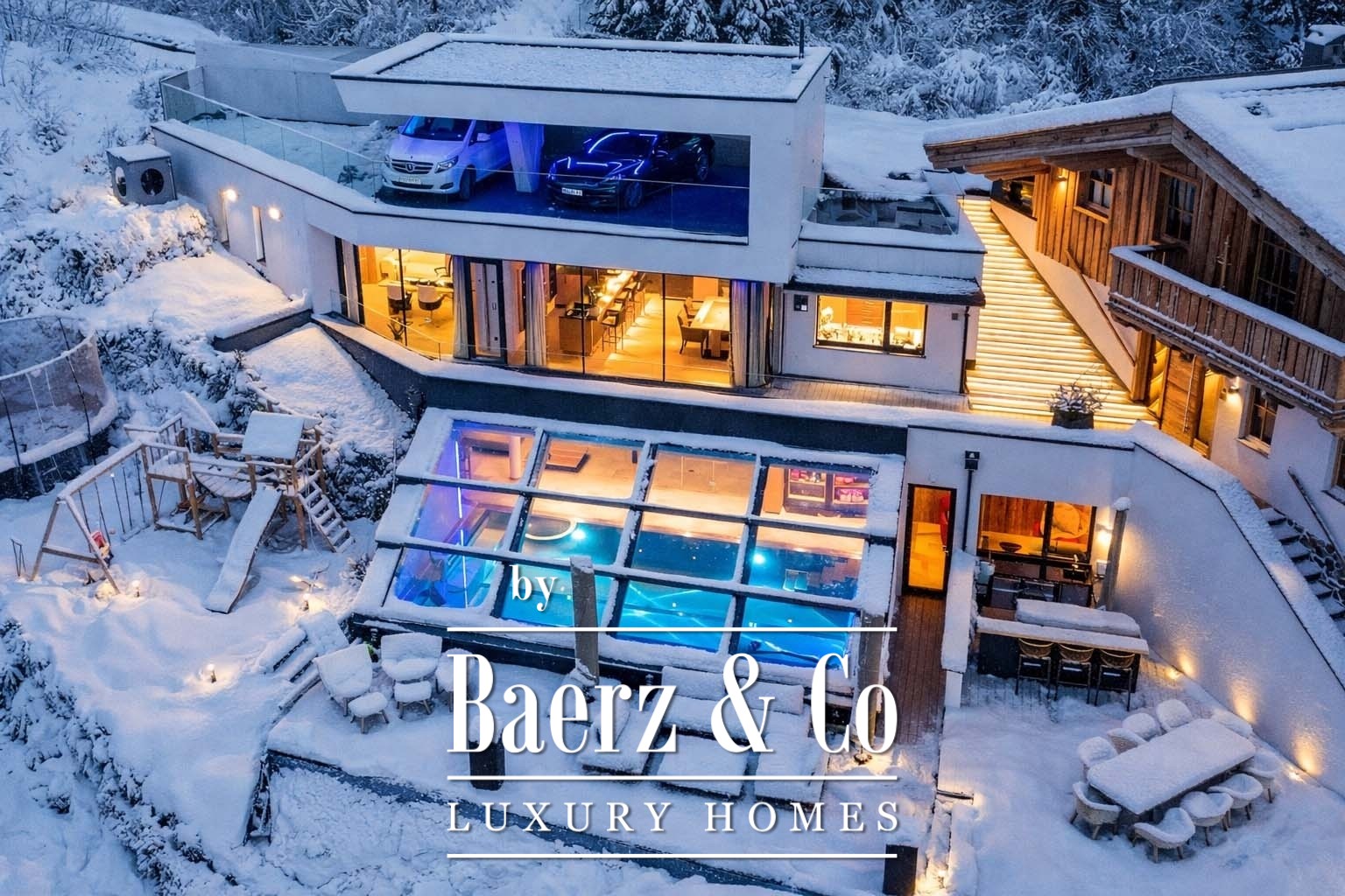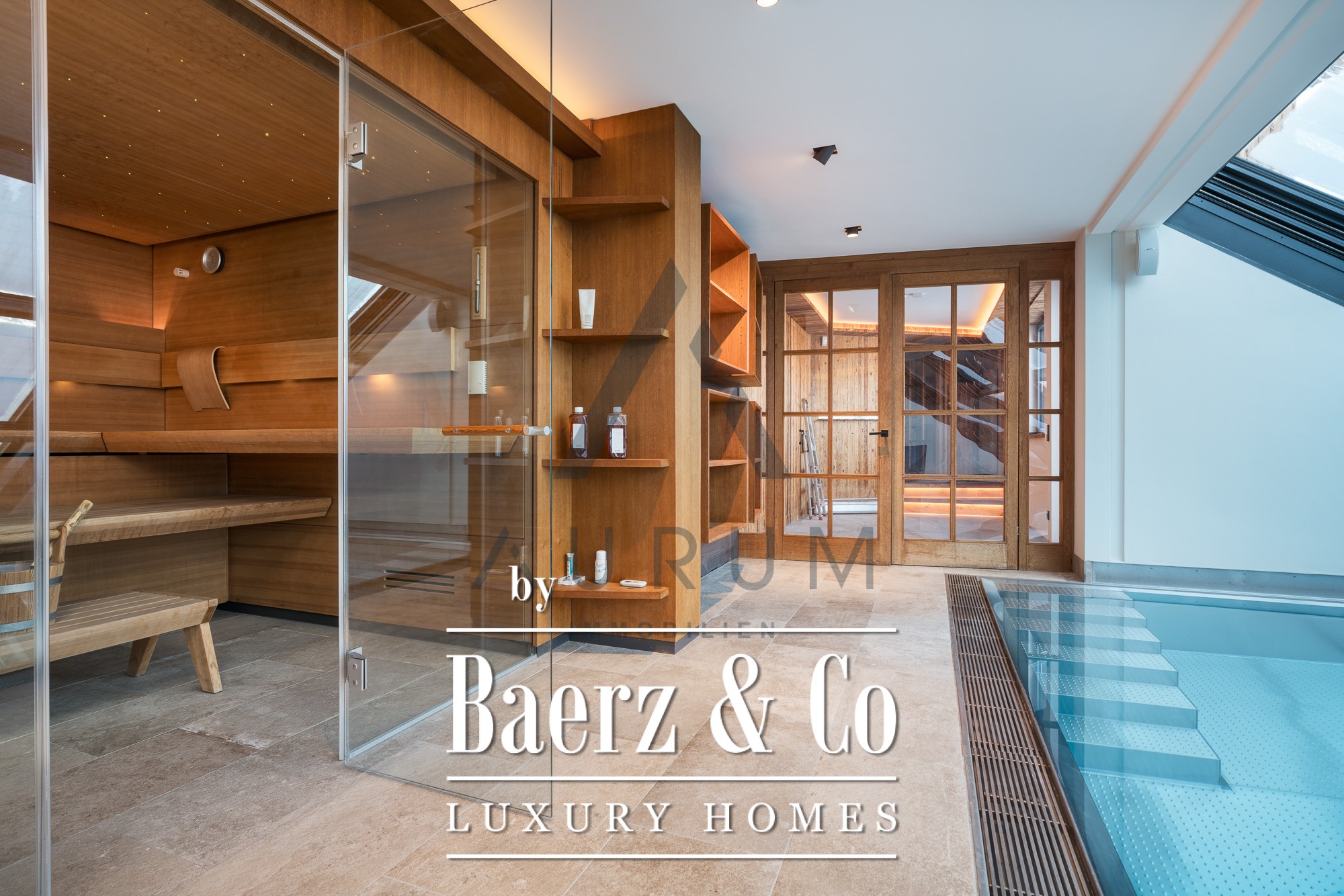 Het privé wellnessgedeelte beschikt over een binnenzwembad, flexibele beglazing en een sauna—een uitnodiging tot ontspanning het hele jaar door met uitzicht op de bergen. Veiligheid en comfort zijn verfijnd gewaarborgd dankzij een alarmsysteem, videobewaking, vloerverwarming, drie carports en extra parkeerplaatsen.