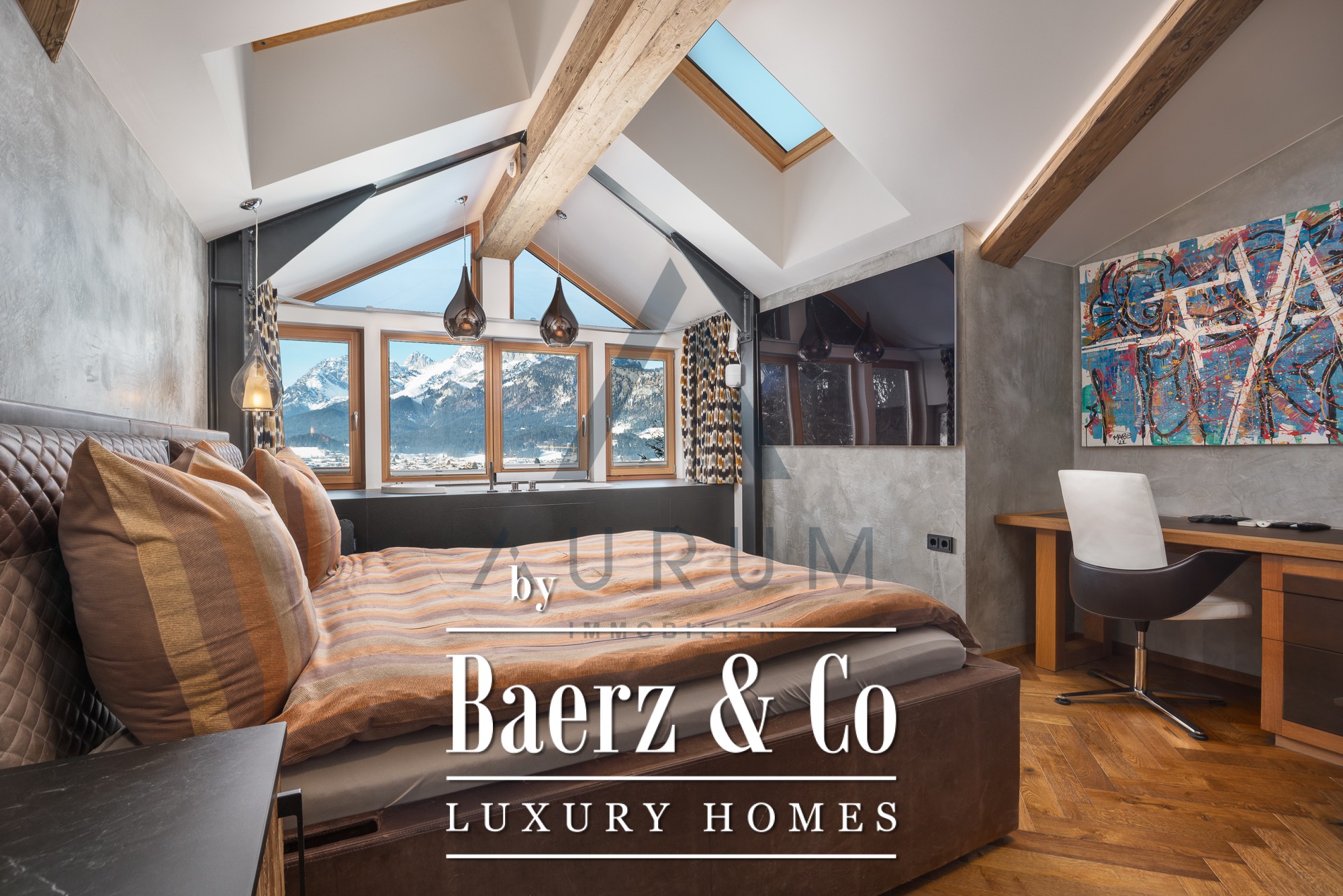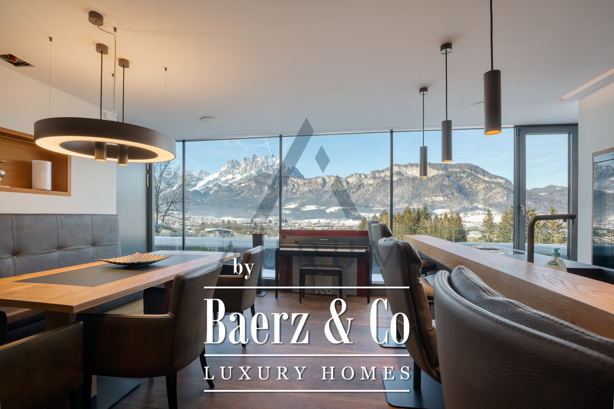 Chalet St. Johann in Tirol neemt een prestigieuze positie in aan de bosrand, direct aan de skipistes, met onbelemmerd uitzicht op het Wilder Kaiser-gebergte. Deze woning biedt 515 m² verfijnde woonruimte, verdeeld over drie royale verdiepingen, met vijf slaapkamers, vijf badkamers en een perceel van 1.056 m². Van de leefruimtes tot de buitenterrassen weerspiegelt elke ruimte het ritme van het landschap en de warmte van het Alpenlicht.