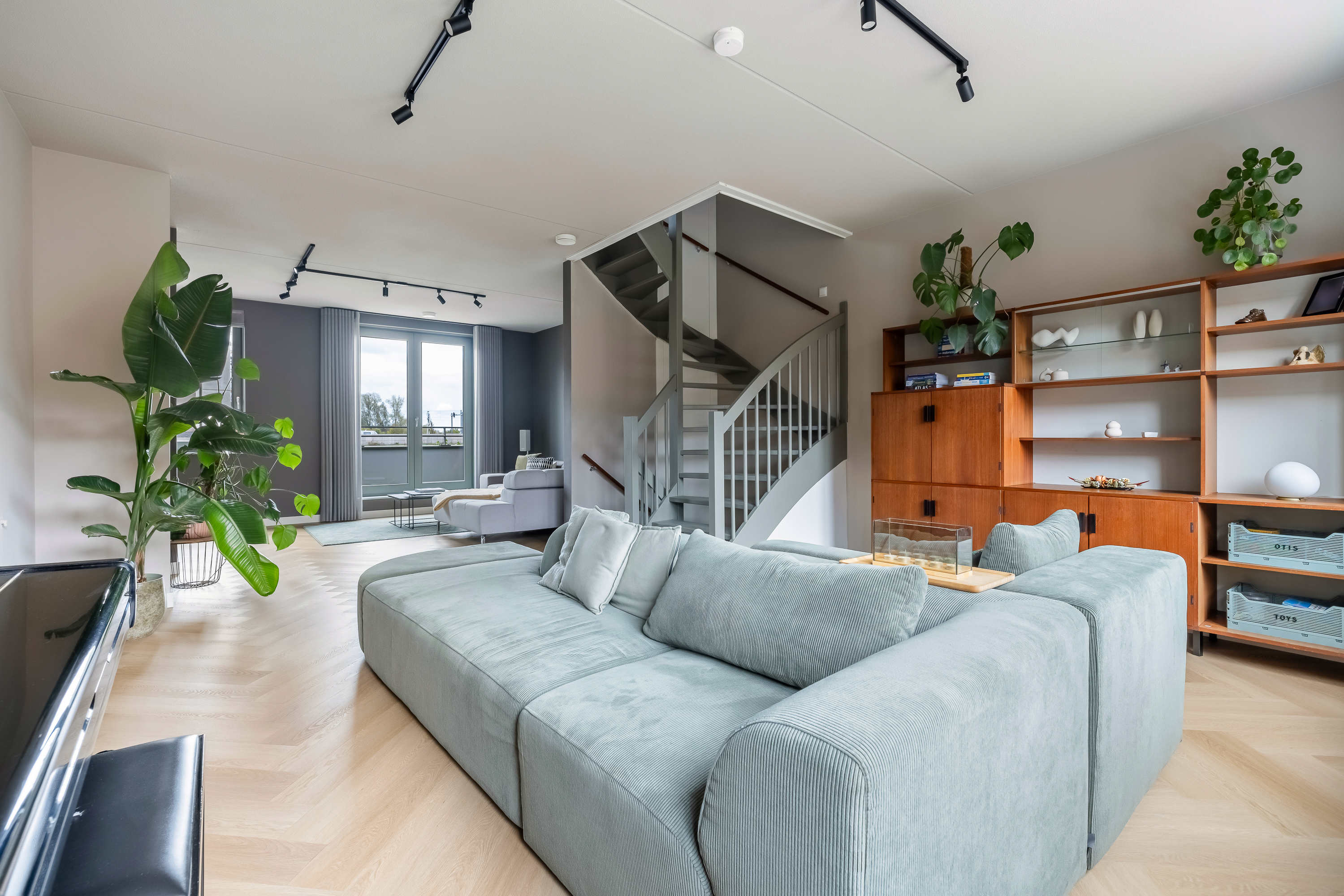 De woning is tot in detail ontworpen. Warm, luxe en eigentijds, zonder koel of afstandelijk te worden. De maatwerkkeuken is een echte leefkeuken. Kasten tot aan het plafond, mooie materialen en goede inbouwapparatuur die met wifi te bedienen is. Je zet de oven alvast aan onderweg naar huis, laat de broodjes bakken voordat je beneden komt en schuift daarna meteen aan om samen te eten. Alles is strak uitgelijnd, nergens standaard, alles klopt. Dit is een huis voor mensen die oog hebben voor detail.