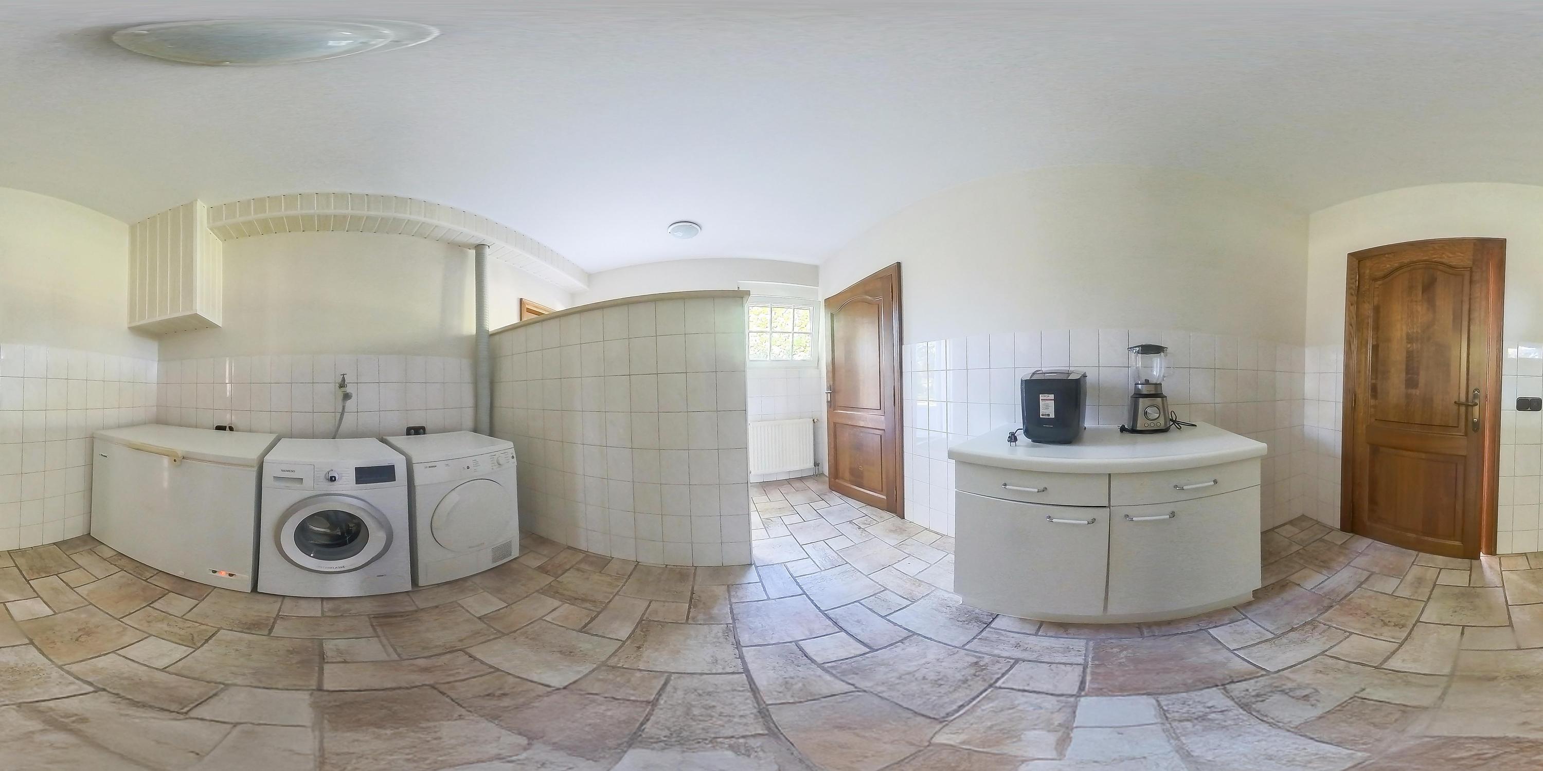 de unit voor de vloerverwarming gesitueerd. Een loopdeur biedt toegang tot de achtertuin. Openslaande deuren
