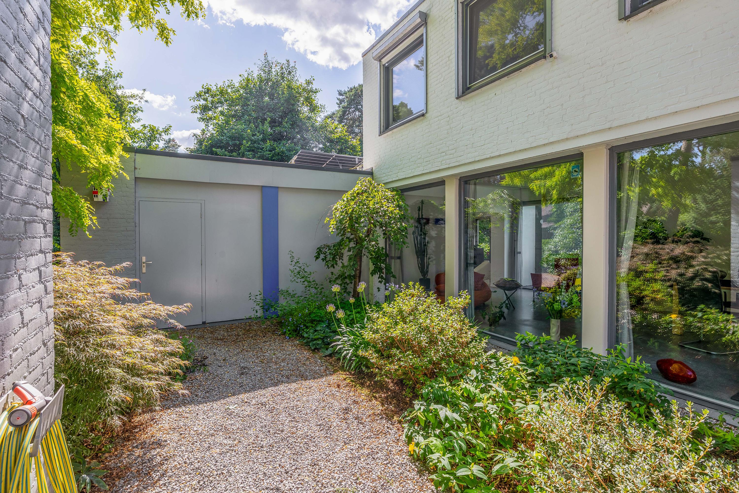 De vrijstaande stenen garage is een welkome aanvulling; deze is voorzien van krachtstroom en toegankelijk via een losse loopdeur en een elektrische segmentdeur. Hier bevindt zich ook de glasvezelaansluiting. Uniek is dat de beregening van zowel de voor- als achtertuin hier computergestuurd geregeld wordt.