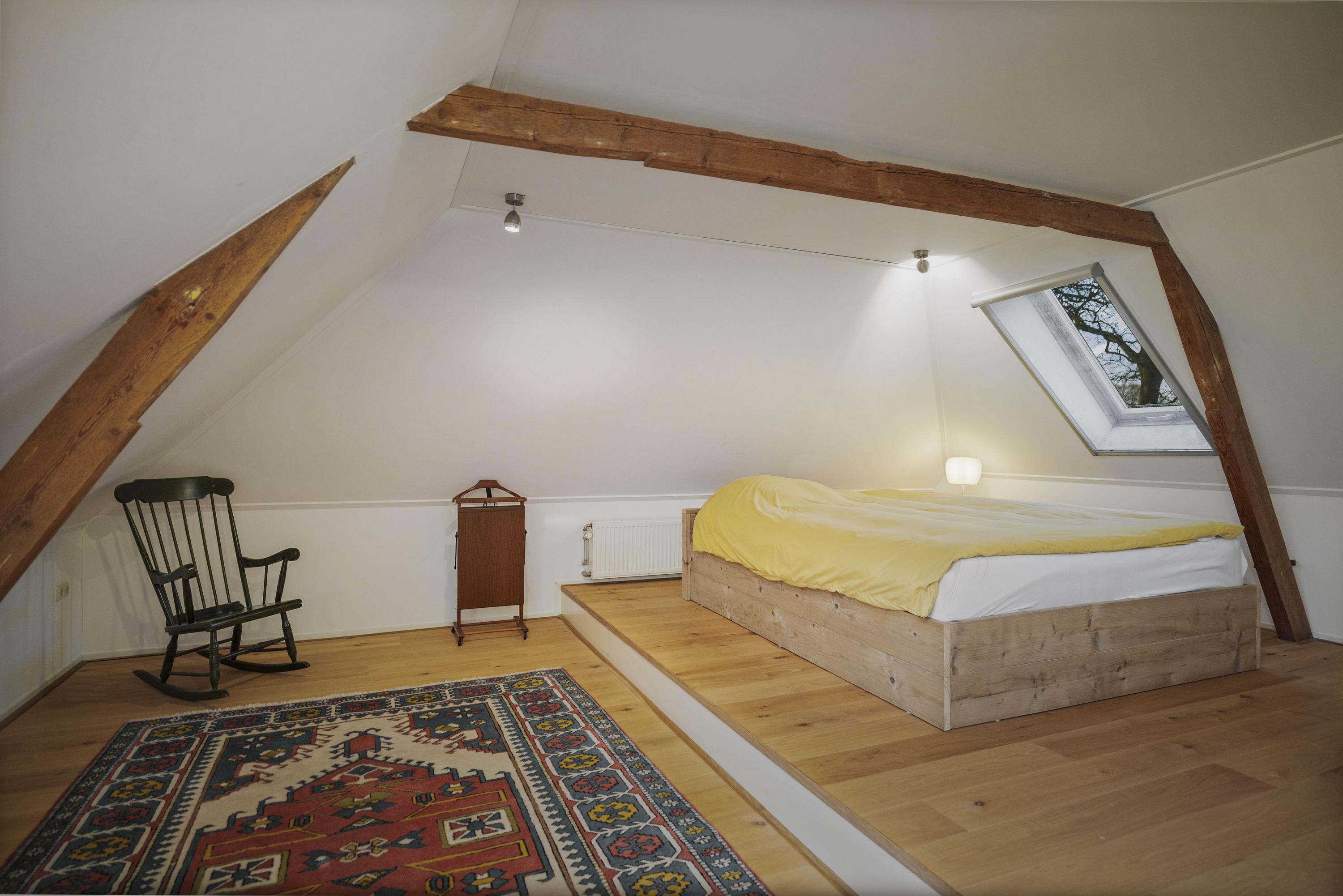 Aan de royale en zonnige overloop, met op de vloer een rood eiken planken vloer, grenzen vijf ruime slaapkamers. De ouderkamer beschikt over een eigen badkamer met inloopdouche, WC en wastafel. In het voorhuis bevindt zich tevens de waskamer/ technische ruimte, met de aansluitingen voor de wasmachine en -droger, de ketel en het buffervat en een boiler van 120 liter, alsmede een praktische berging. Hier is tevens de tweede badkamer, met dubbele wastafels, een ruime inloopdouche en een WC.