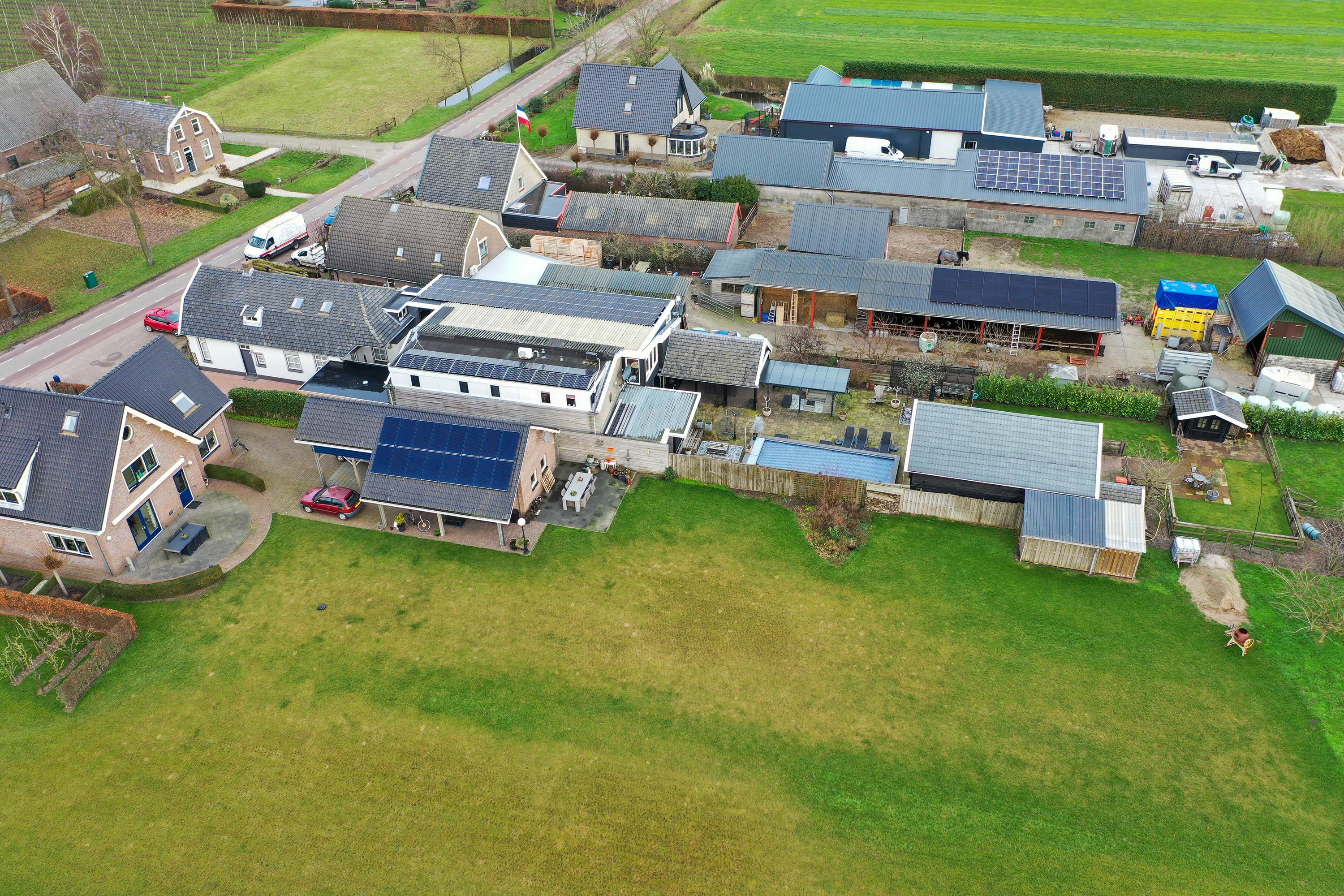 Achter de karakteristieke gevel bevindt zich een gemoderniseerde woonboerderij die tot in detail is verzorgd en ingericht voor comfortabel wonen. Met een woonoppervlakte van maar liefst 416 m² en energielabel A komen luxe en duurzaamheid hier overtuigend samen. De woonkeuken is in 2022 vernieuwd en sluit perfect aan op de ruime en lichte leefruimtes die een prettige en rustige sfeer bieden. Buiten liggen een verwarmd zwembad een royale overkapping met buitenkeuken, een ruime oprit en diverse multifunctionele bijgebouwen waaronder een bijgebouw dat in een sfeervolle restaurant setting is ingericht (uitsluitend voor privégebruik). De woning beschikt bovendien over een eigen boomgaard wat bijdraagt aan het landelijke karakter van het geheel. In totaal zijn er 48 zonnepanelen aanwezig die bijdragen aan lage energielasten.