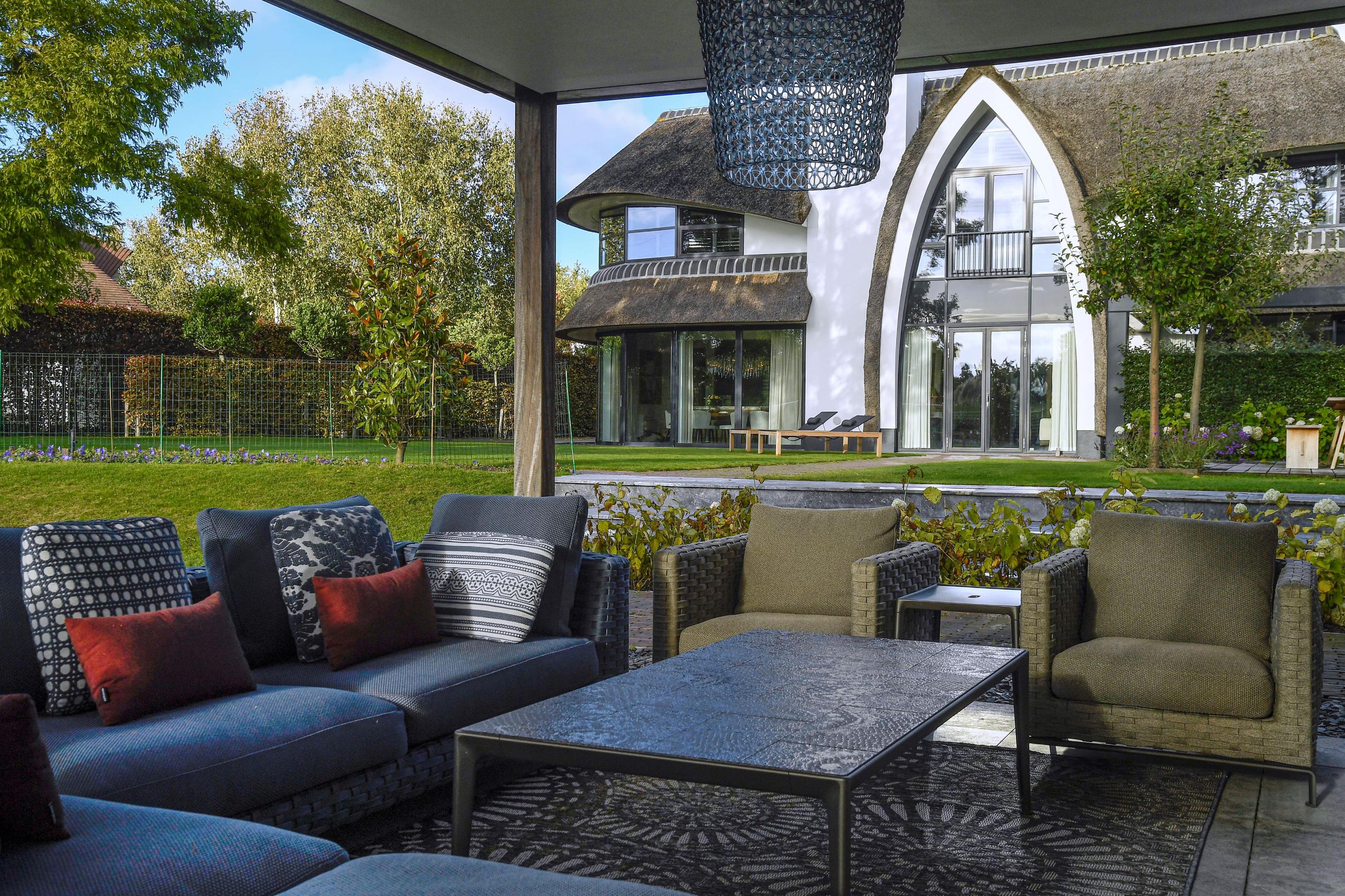 Met haar rieten kap, sculpturale lijnen en ligging aan het water is deze villa een herkenningspunt in de regio - ontworpen door Van Manen Architecten, bekend om hun tijdloze en elegante stijl.
