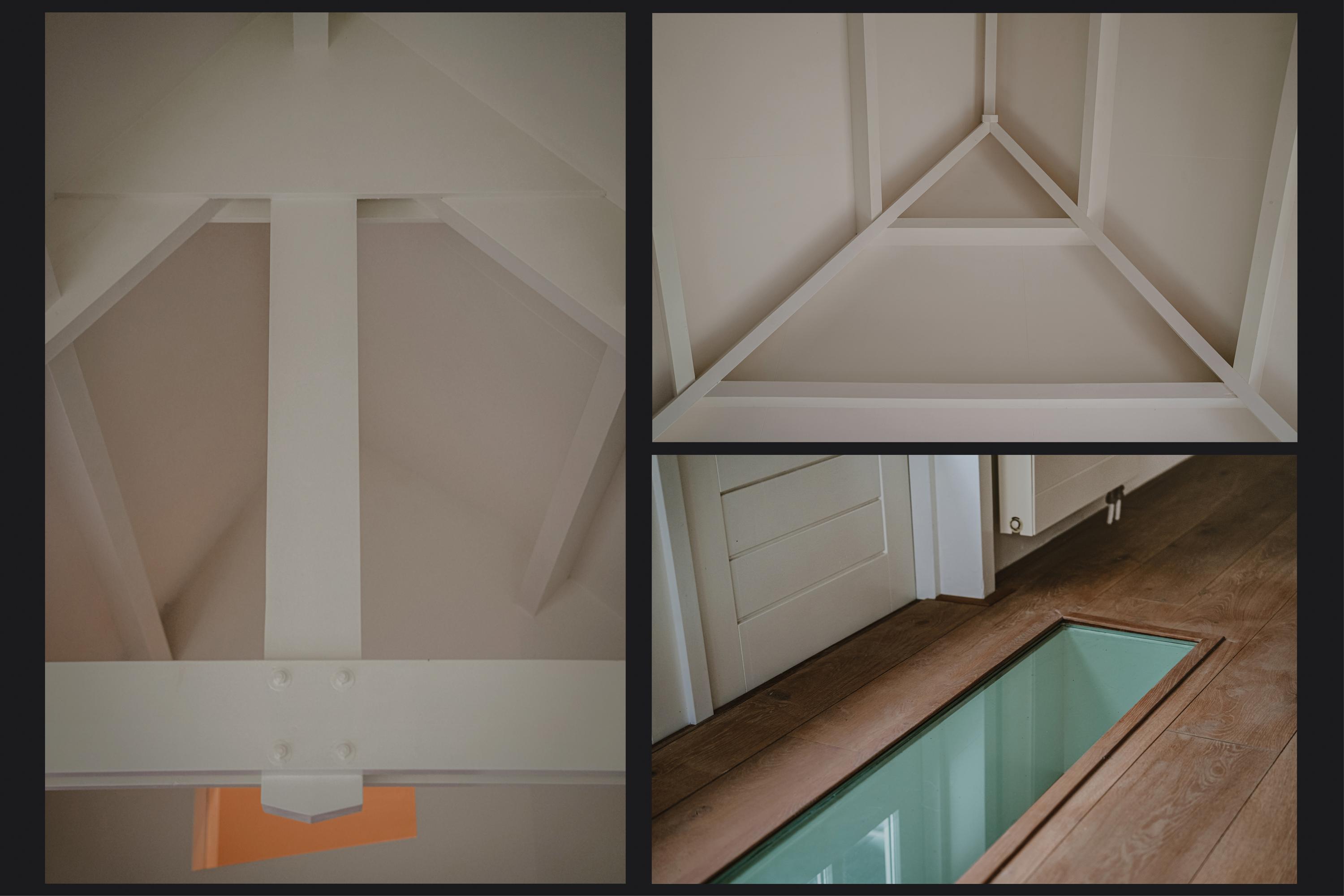 Bovengekomen is het één grote verrassing. Er is een zee van ruimte met veel licht en een geweldig uitzicht. De ruimte in het oorspronkelijke dijkhuis is ingericht als werk/lounge-ruimte, waarbij de nok in het zicht is gebleven. Vanuit deze ruimte geven openslaande deuren met 6-ruitsroedeverdeling toegang tot het riviergerichte dakterras. Aan de achterzijde, in de uitbouw uit 2003, bevindt zich een tweede woonruimte met eveneens openslaande deuren en veel ramen. Ook hier is een prachtig zicht over de rivier de Waal. Deze inspirerende ruimte leent zich bij uitstek als atelier of als extra slaapkamer.