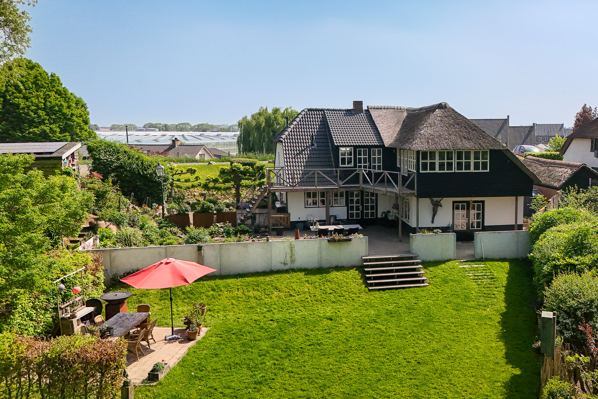 Tuingerichte woonkeuken met verhoogd eetgedeelte, tuin-/werkkamer, slaapkamer, luxe badkamer, toilet en een grote bijkeuken op de begane grond.
